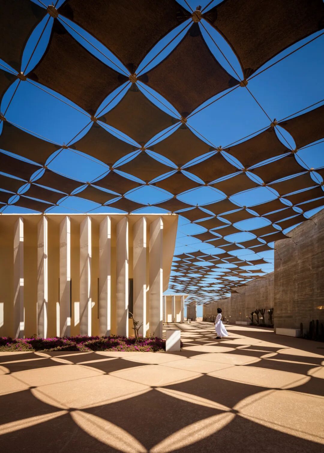 这个空间成为校园的支柱,连接着沿着有盖的走道连接的研究单元,多亏了钢索和sahrawi颜色的遮阳帆布,因此提供了太阳能控制。建筑外的生活空间和功能性建筑风格根植于当地的根基。