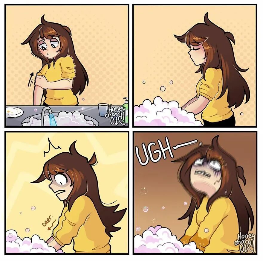 当然,在这些插画作品中,还有很多描绘情绪的场景,像是女孩的敏感、胆小和勇敢,每一幅画作都非常有趣,这也是人们喜欢她的原因之一。接下来,就让我们一起来欣赏一下这些有趣的插画作品吧。