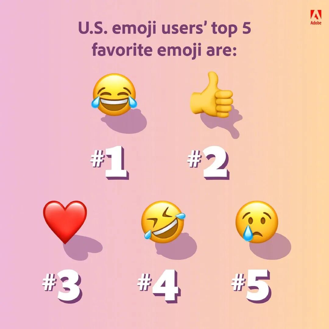 由 Adobe 今年选出的 5 个大家最常用的 emoji,第 1 个真是常年霸榜,你最常用的表情是什么
