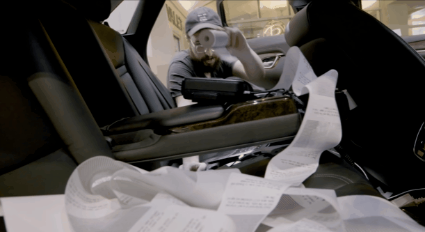Goodwin 在汽车上安装了一个可以指向四个方向的监控摄像头,并将 GPS 接收器连接到一个位置数据库。在车内,一个麦克风记录了 Goodwin 和他的摄制组以及其他项目合作者之间的对话。人工智能将所有这些输入处理成一个手稿,逐行逐字地进行制作,再通过 11 个收银机将这些内容打印在纸上,打印出来的手稿逐渐填满了整个后座。