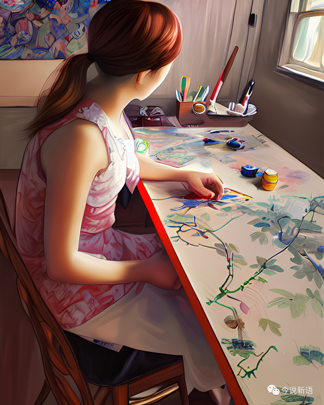 同样要表达的效果在Stable Diffusion中多次迭代没有找到合适的构图和效果,而上面这幅是Midjourney新版第一次迭代就有了符合心中所想的构图,后面仅进行了两次迭代细化。
