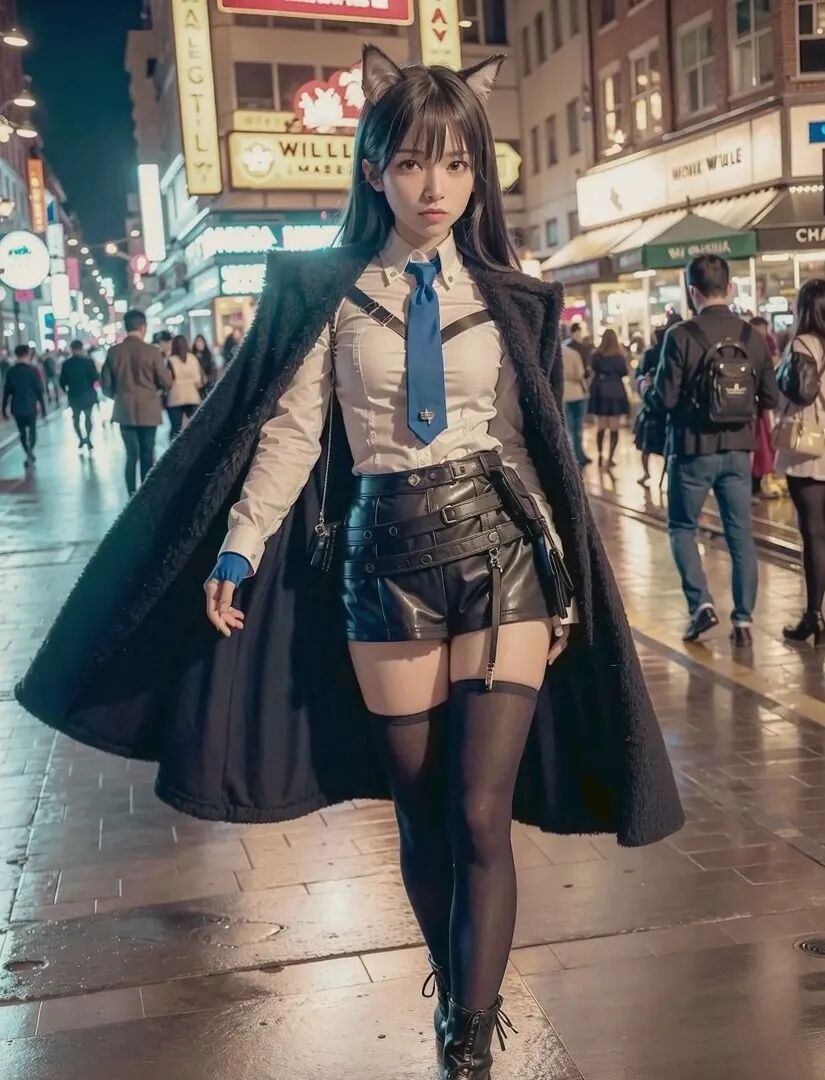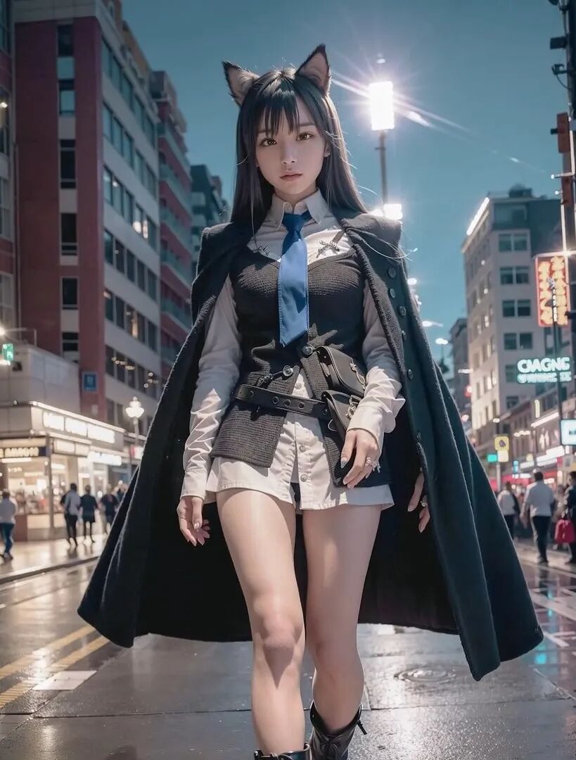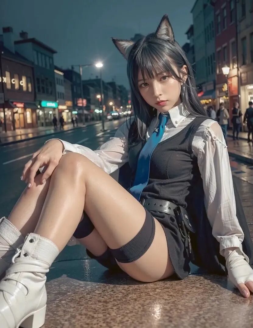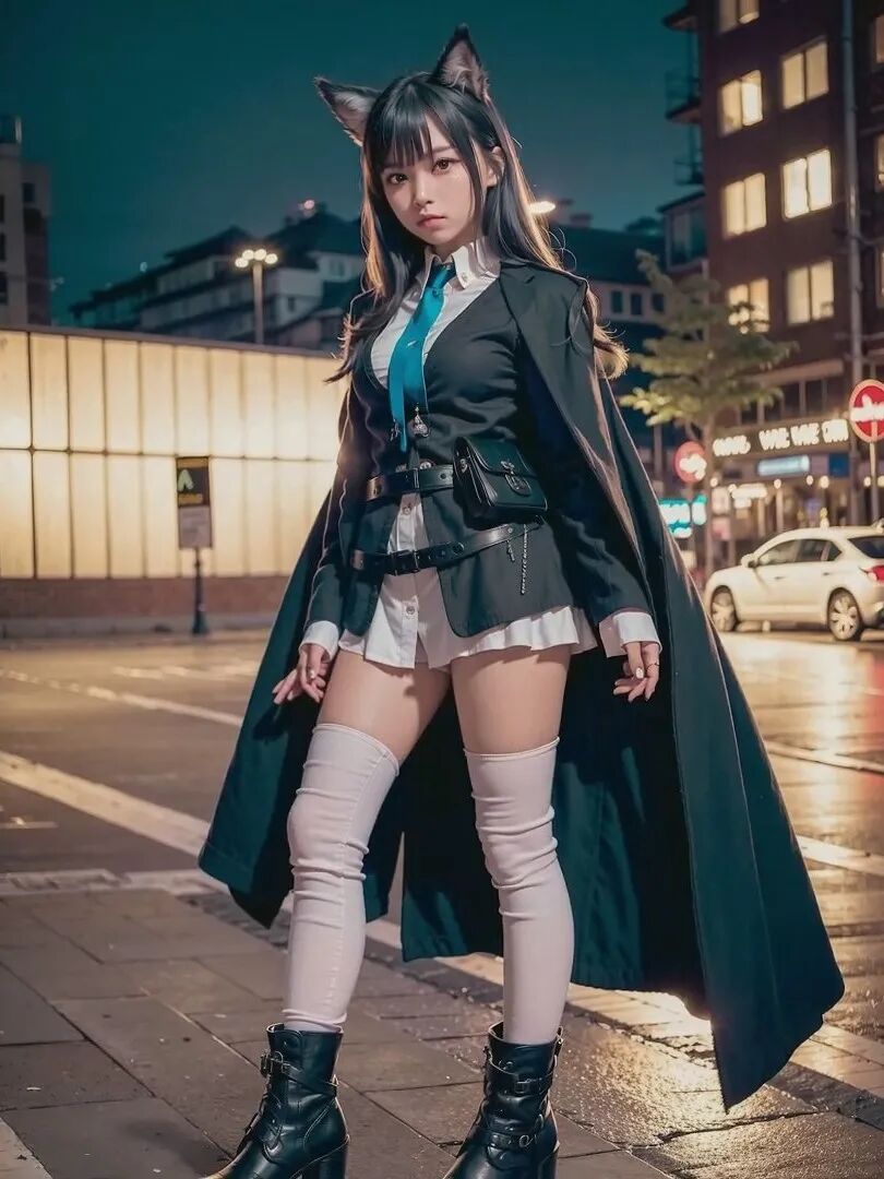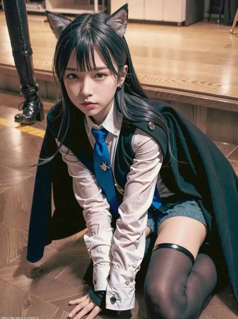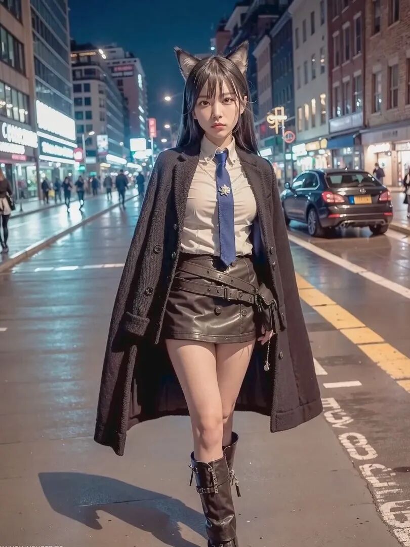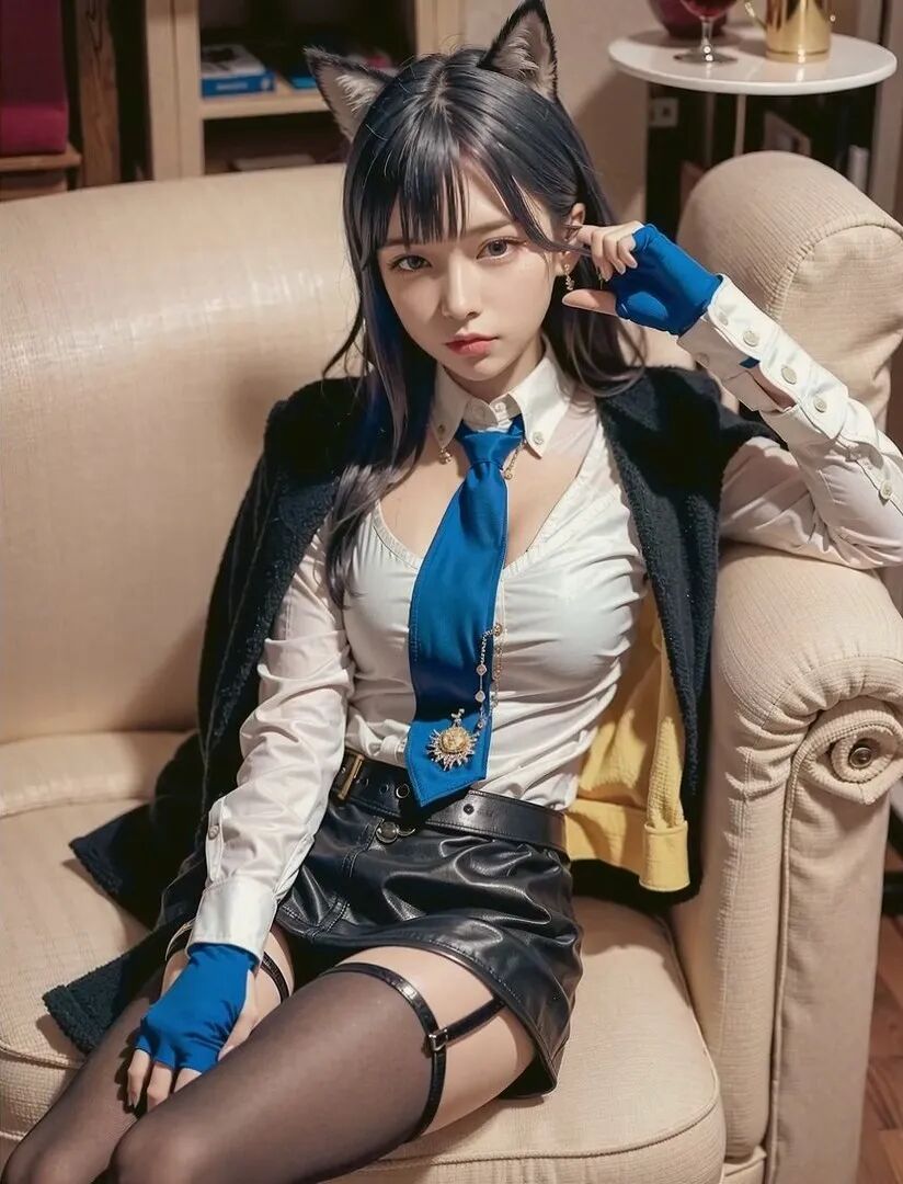 这毫无违和感的毛茸茸兽耳,完美精致的五官颜值面容,毛料衬衫皮衣丝袜的真实质感,活脱脱的就是一个从二次元走出来,走进现实里的真实女友!