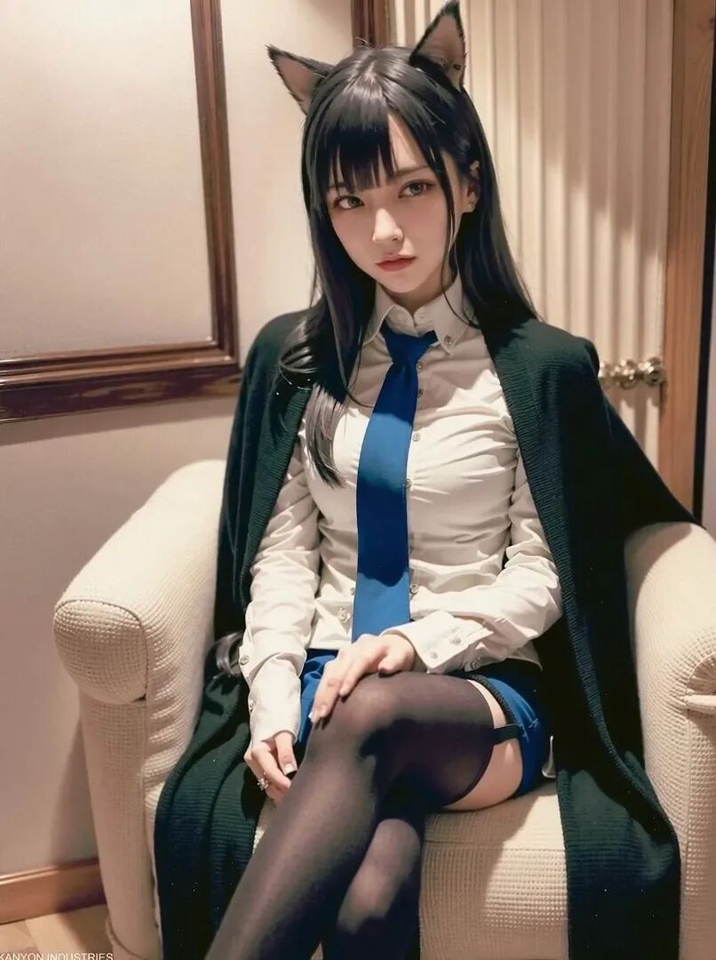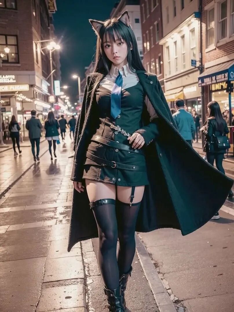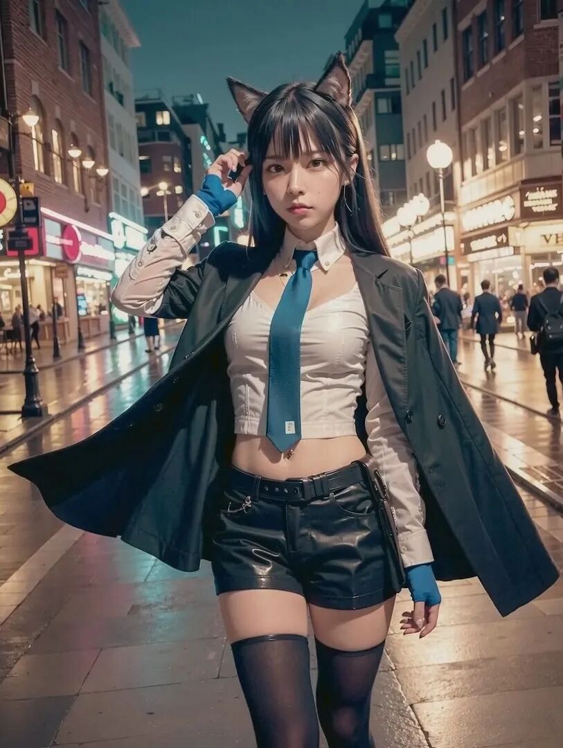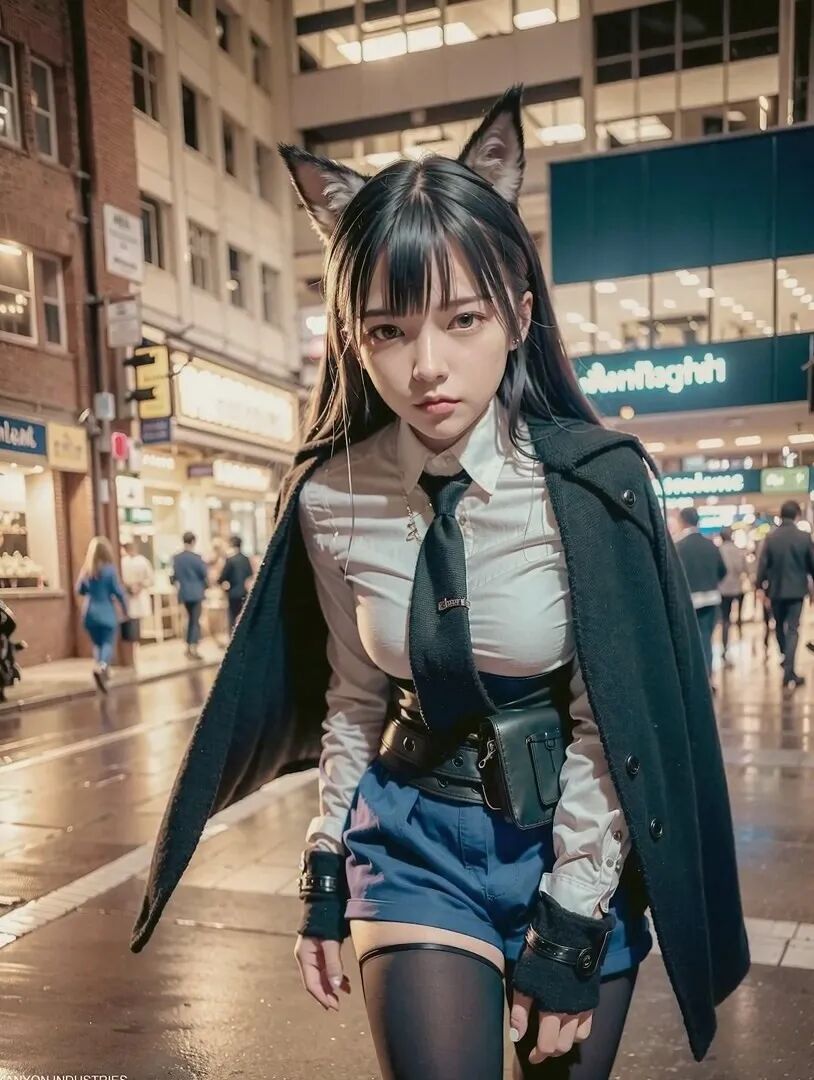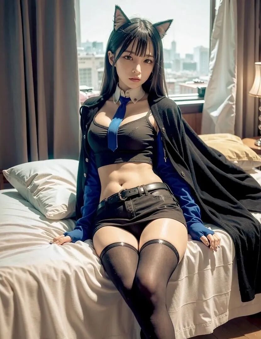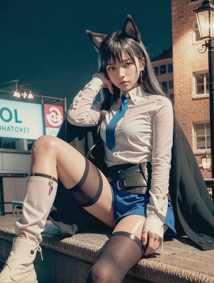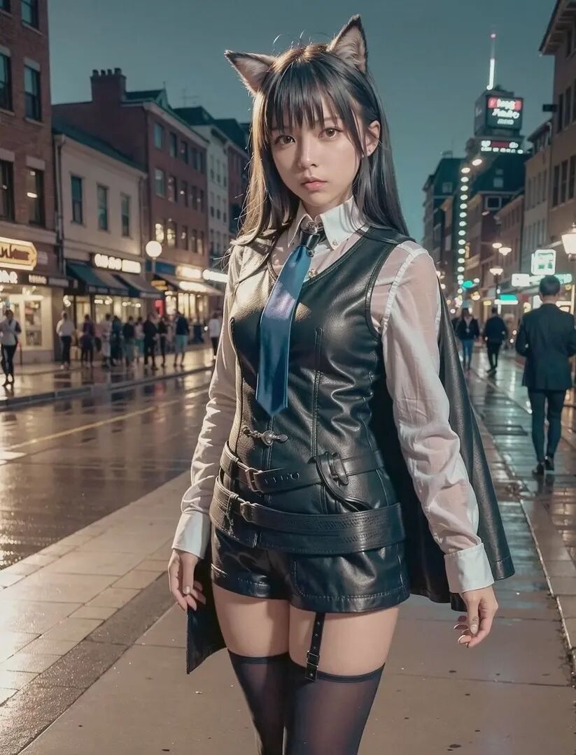 这毫无违和感的毛茸茸兽耳,完美精致的五官颜值面容,毛料衬衫皮衣丝袜的真实质感,活脱脱的就是一个从二次元走出来,走进现实里的真实女友!