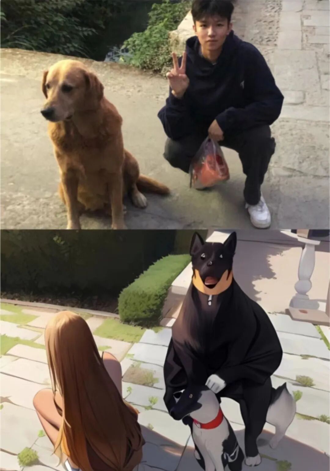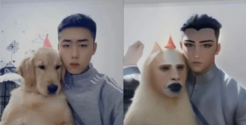 下面这个虽然狗子变成了人脸,好歹自己保留了人的外貌: