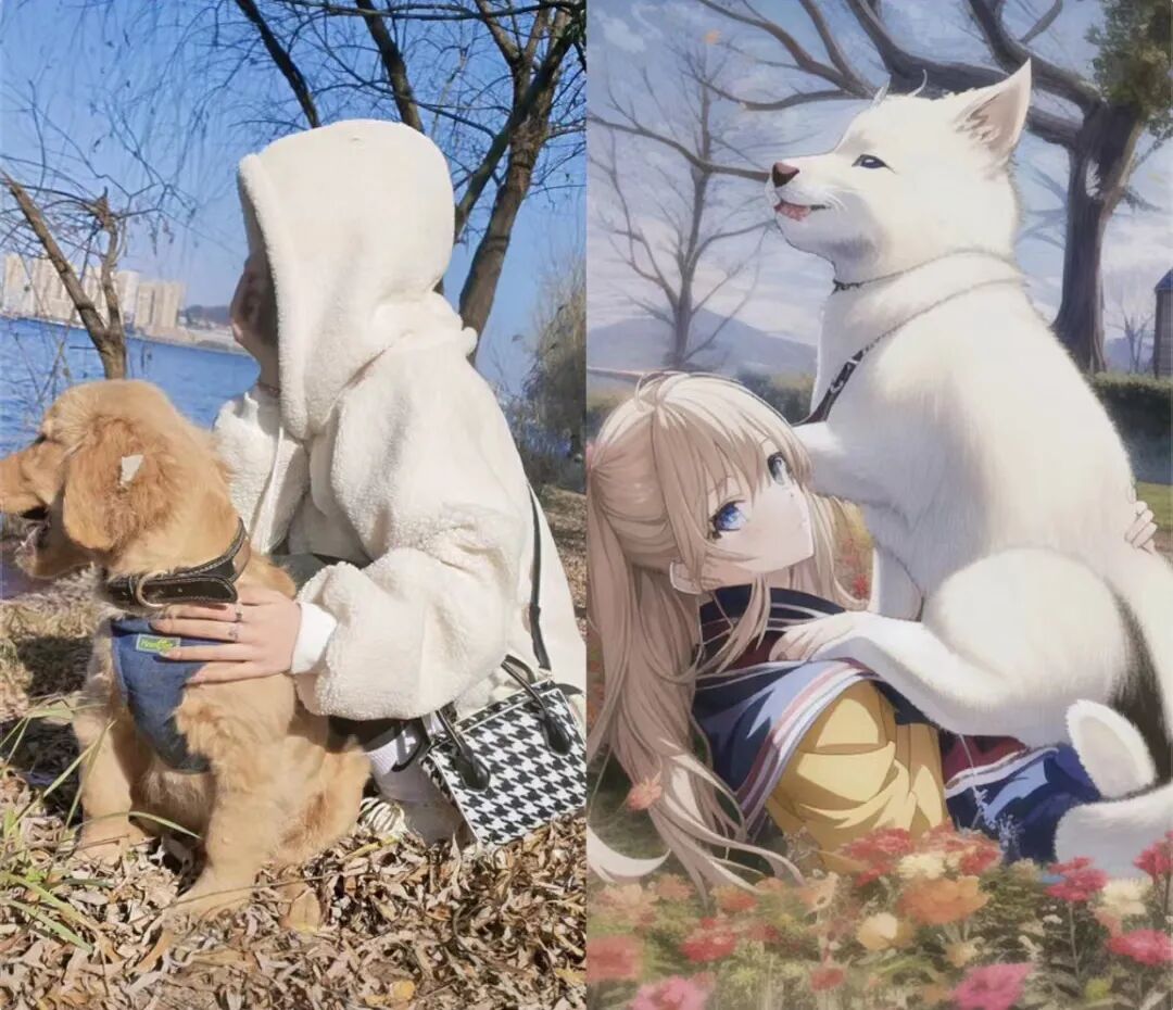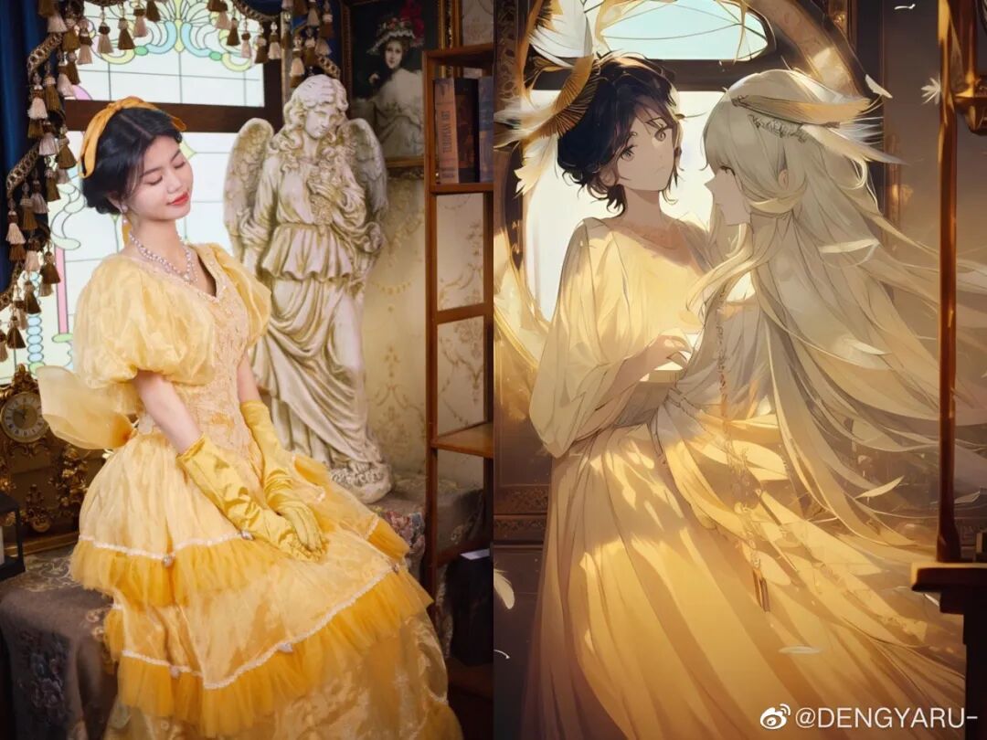 当然,我们印象中AI画出来的画面应该是下面这样的,比如大白变天使: