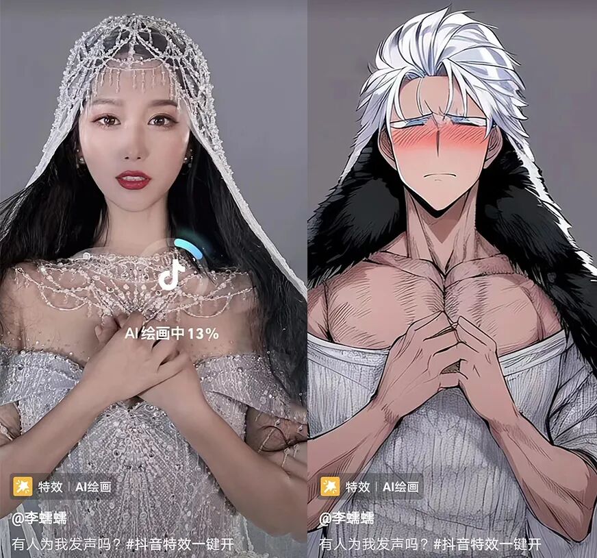 甚至抖音也推出了AI绘画特效: