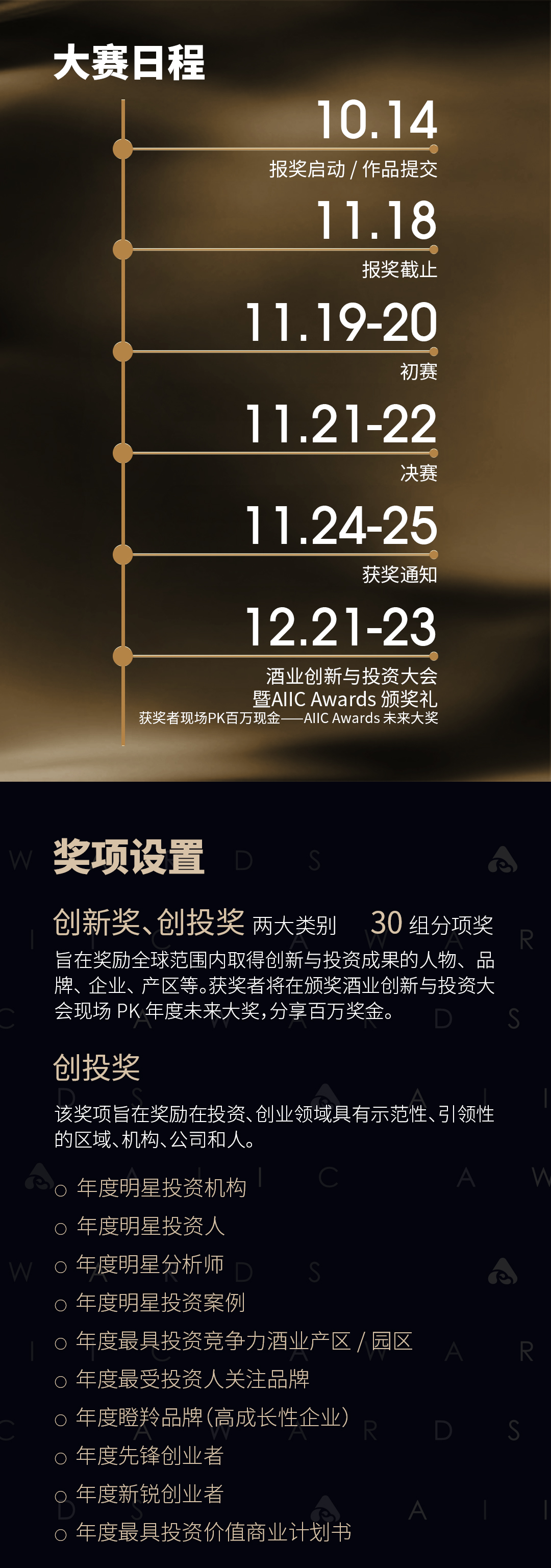 酒业创新与投资大赛(AlICAwards)是酒业创新与投资大会于2022年发起,专注于酒类全产业链创新、创投的赛事,立足中国,面向全球。