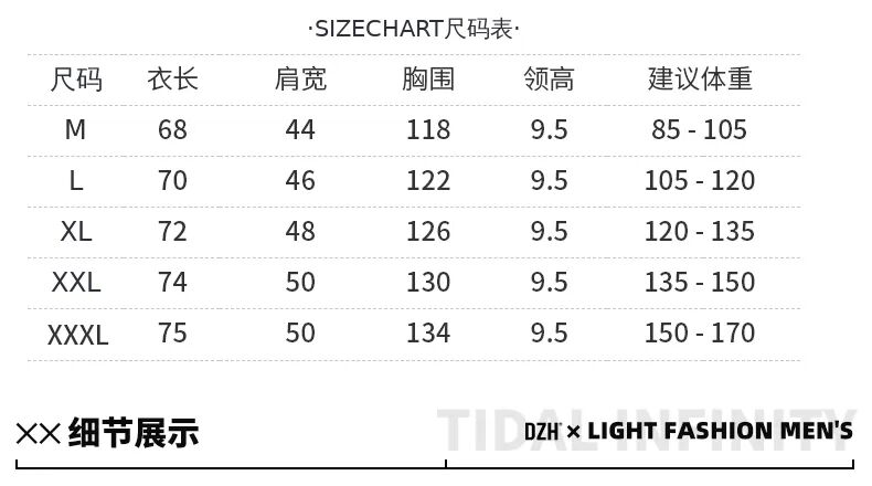 M到XXXL共5个尺码,85~170斤都可以穿,颜色经典百搭,不挑年龄,男女都可穿!