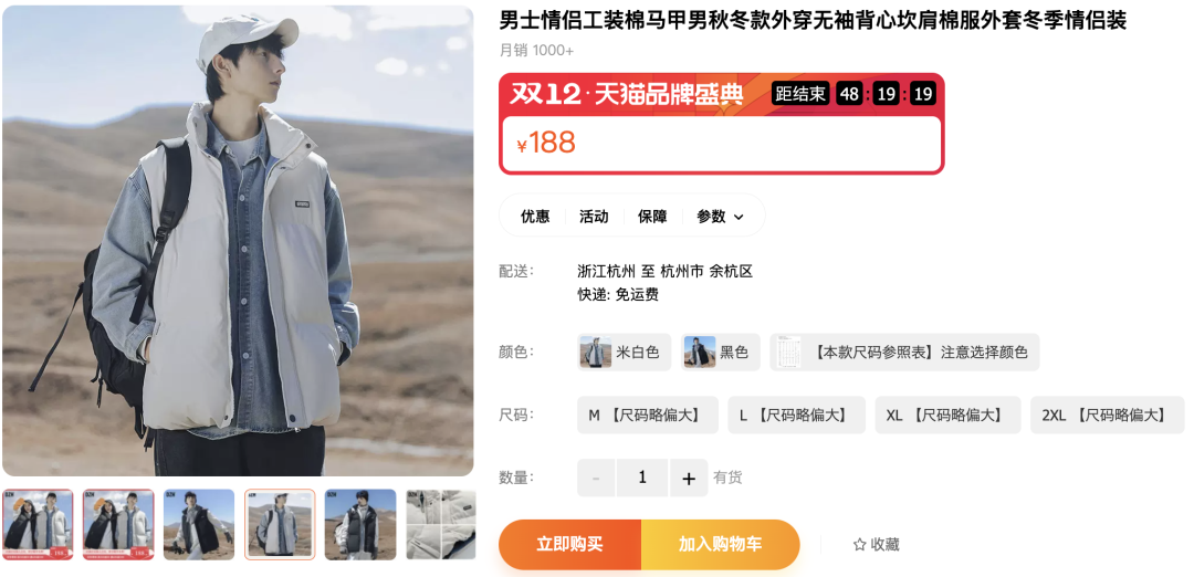这款WTW保暖棉马甲,在某宝的价格基本都快200块了,刚上架就卖了1k件,非常受欢迎!