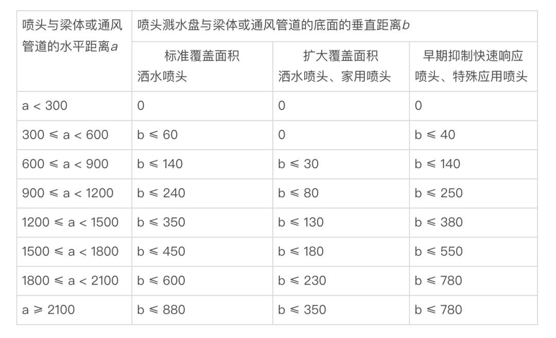 3)喷淋点位与梁体的距离,需符合以下图表的规定: