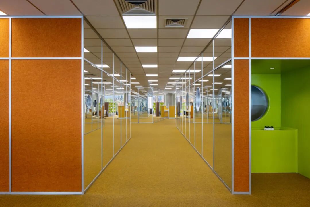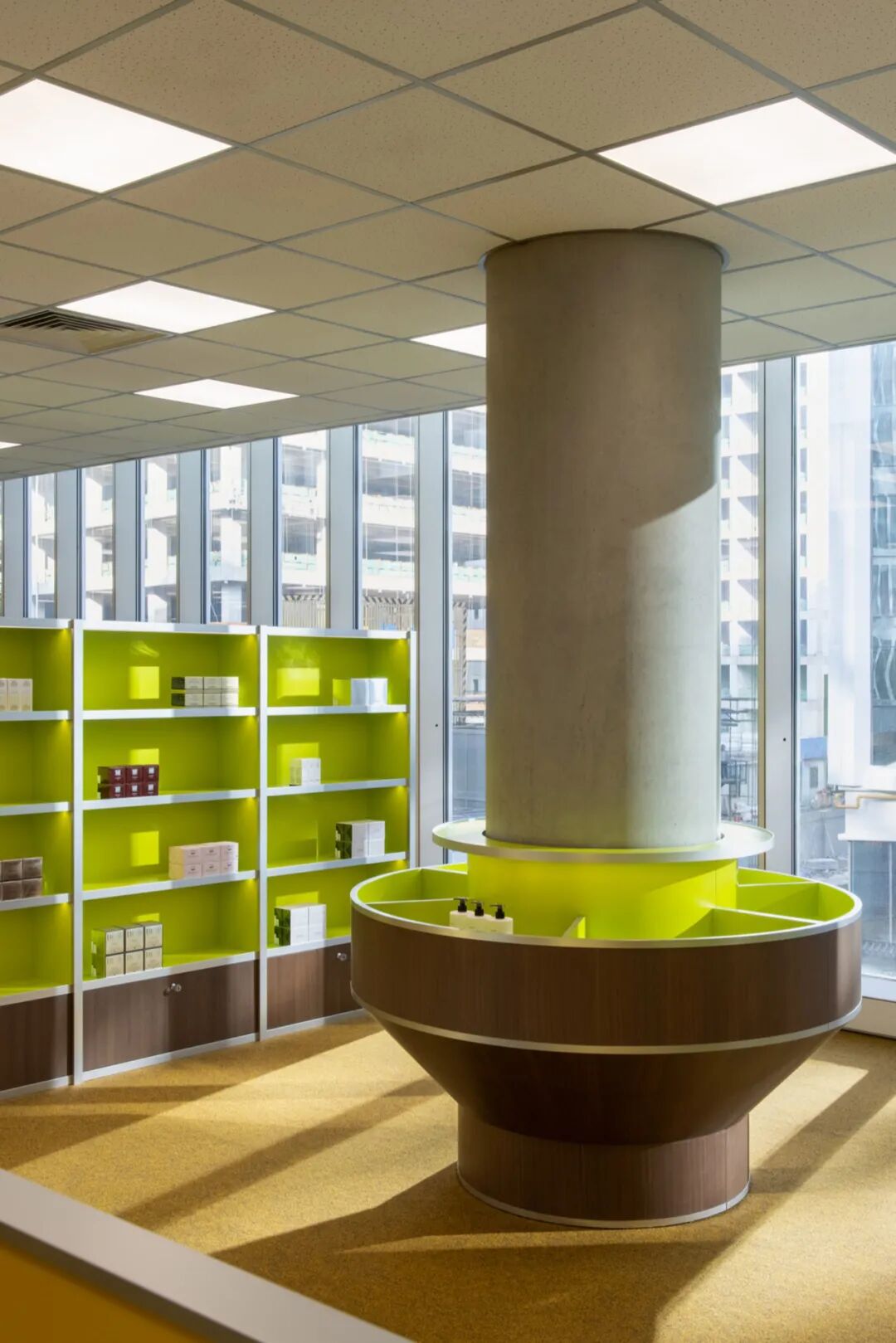 AIM 为这个 1382 平方米的空间选取了上世纪 70 年代流行的黄、橙和棕柔和色调。事务所希望该门店能够成为对工作生活的一种致敬,帮助顾客意识到,相比线上购物,线下门店购物体验的诸多好处。