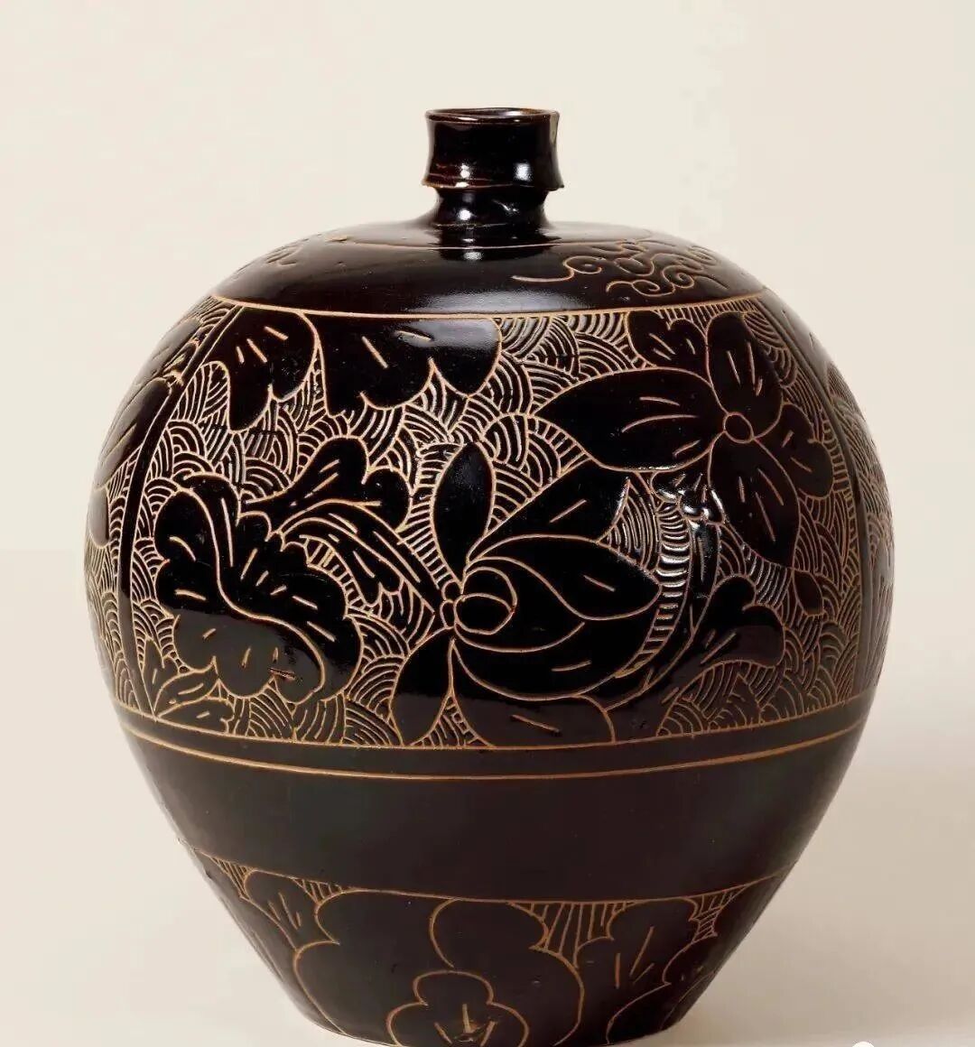 南宋吉州窑梅花纹嘟噜瓶 美国波士顿美术馆藏