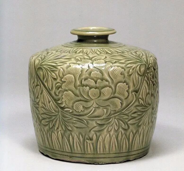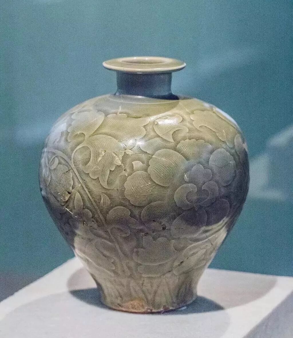北宋 耀州窑青釉刻花牡丹唐草纹嘟噜瓶