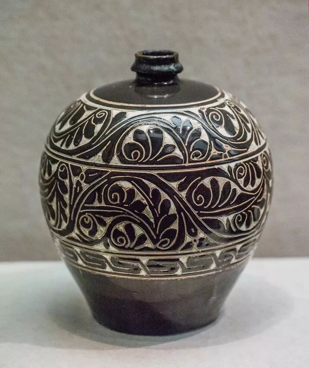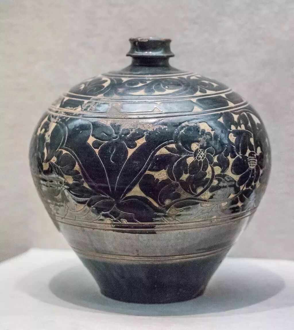 这种黑釉铁锈花嘟噜瓶是金元时期生产数量最多的基本款。