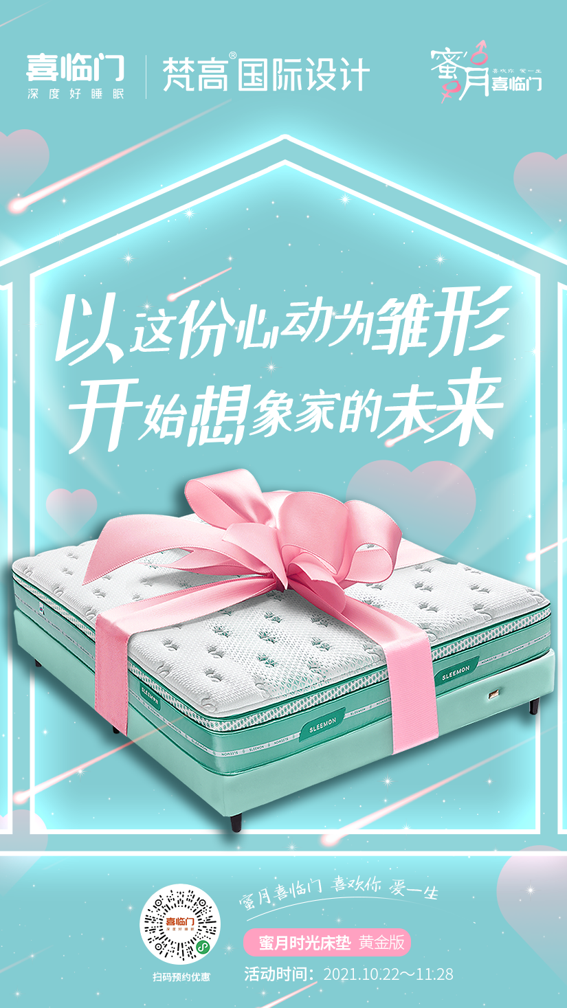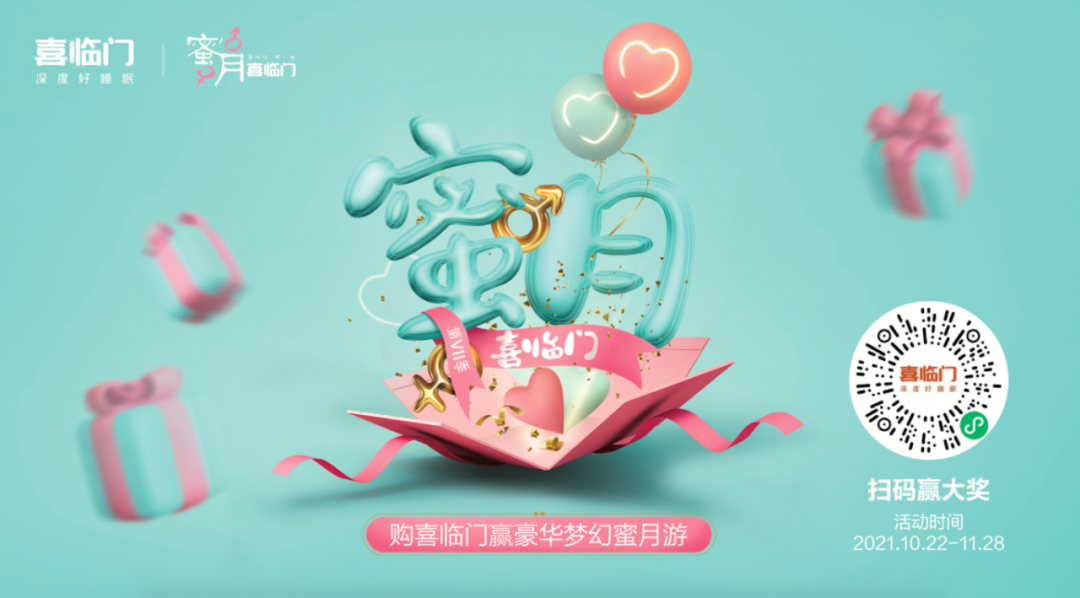 在喜临门看来,蜜月不止是新婚,而应延伸到整个一生,因为喜欢一个人从一分一秒到一生一世,只要在一起的每一时刻都是蜜月。