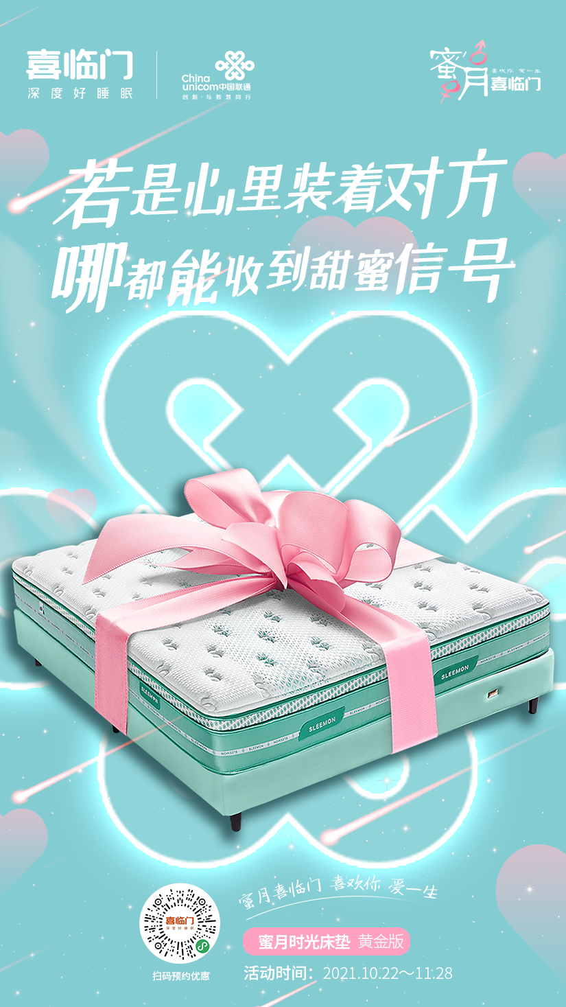 喜临门此次的营销选择了品牌之间互相联动,共同提升,并精准地找到了20个与自己“门当户对”的品牌,知名度、调性、消费群体等各个层面高度契合,互相联动形成交叉传播,从而扩大传播范围、触达到更多的用户,使品牌影响力呈现出几何式增长的态势,低成本和广传播,让每个品牌做到了“名”和“利”双收。