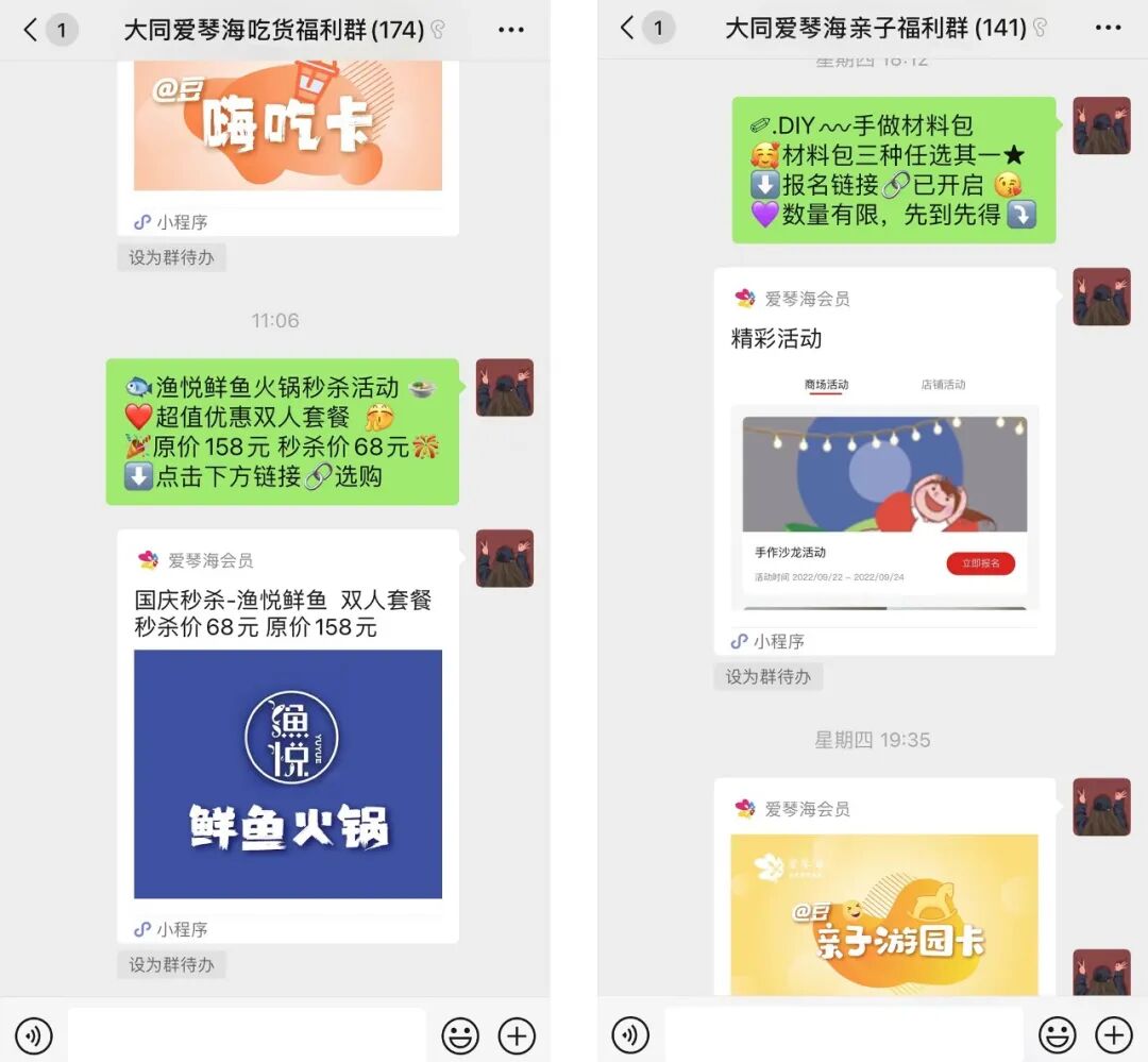 在采访中,爱琴海提到一个项目运营的具体案例。大同魏都爱琴海通过线上线下拉新,共建了51个社群。这些社群不是简单地将购买用户聚在一起,而是按照运动、服饰、亲子、内购福利等不同兴趣和类别给消费者打标签,以兴趣圈层的逻辑将他们聚集。比如星巴克开业前期,在社群内有针对性地发放优惠券,即可高效完成线上宣传-提前绑定流量-引入线下购物的闭环逻辑。这种线上线下结合的方式,在提升曝光量的同时,促进了消费者到店率,也助力了星巴克开业当日获得城市销冠。