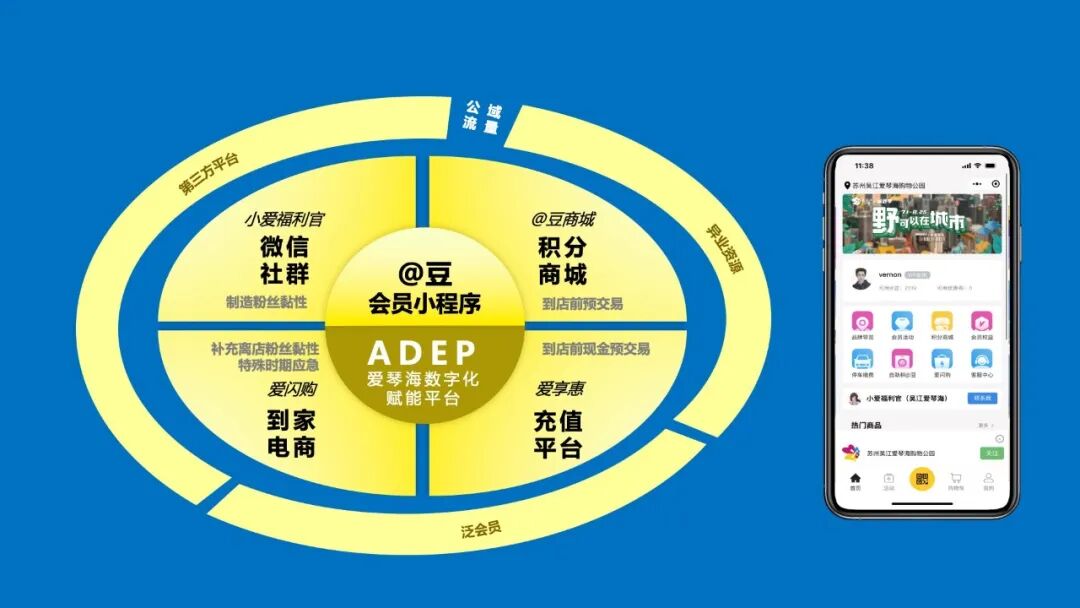 对于私域流量如何形成闭环导流,爱琴海已经迭代出了“入会、入群、入活动”的私域运营链路,并以ADEP数字化平台为核心基于微信生态进行不同模块之间的互动,从而以组合拳的打法实现爱琴海与品牌、消费者的深度联动。基于第三方平台、泛会员、异业合作等途径产生的公域流量,把用户拉到私域流量池中,积分商城“@豆商城”可实现线上到店前的预交易、微信社群管理员“小爱福利官”可制造粉丝黏性,然后通过会员管理,以“爱享惠”充值平台叠加各种粘性互动设计、场内服务设计,吸引用户多频次到店,实现线下闭环导流。而到家电商则是指爱琴海利用其自主开发的“爱闪购”线上商城,此通路可补充离店粉丝黏性以及特殊时期的应急。