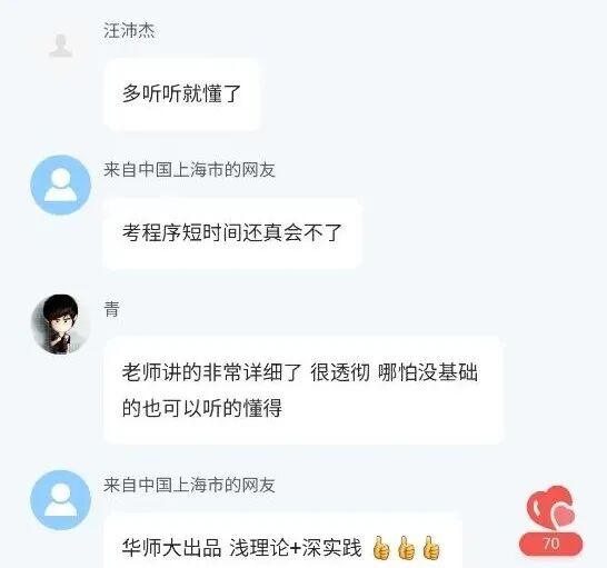 两位老师的课程受到学员的广泛赞誉,学员纷纷在直播间评论区表达了感受。