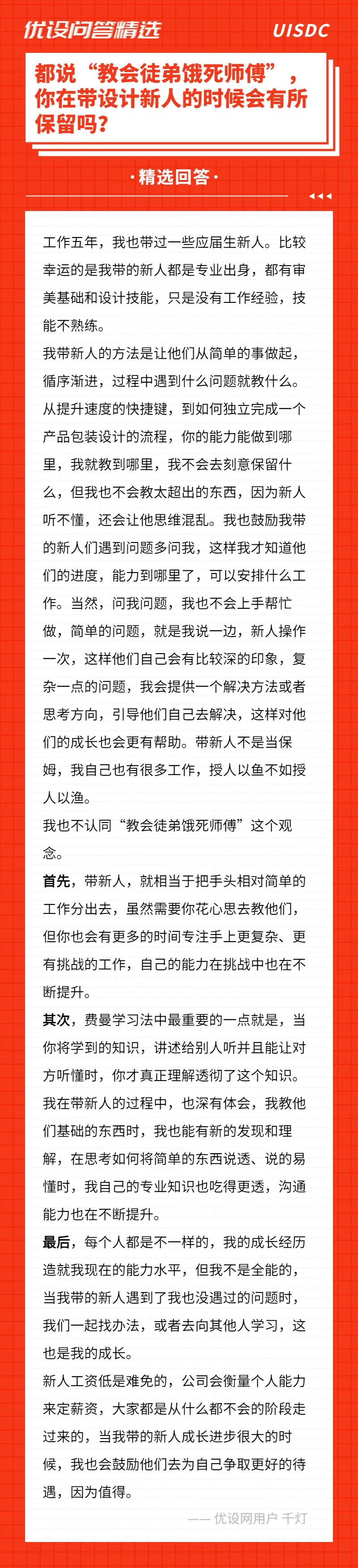 都说“教会徒弟饿死师傅”,你在带设计新人的时候会有所保留吗?
