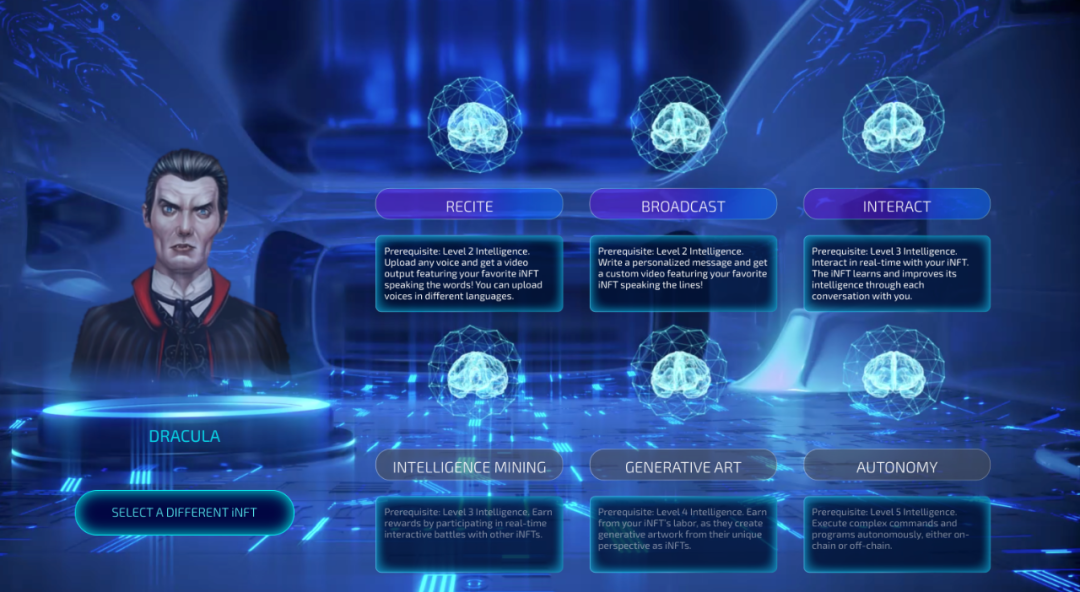 不同的智能级别赋予访问不同人工智能服务的权利。智能级别越高,iNFT 可用的 AI 服务就越强大。例如,一种类型的智能 2 级 AI 服务是广播,该 AI 服务使 iNFT 能够创建短视频消息。