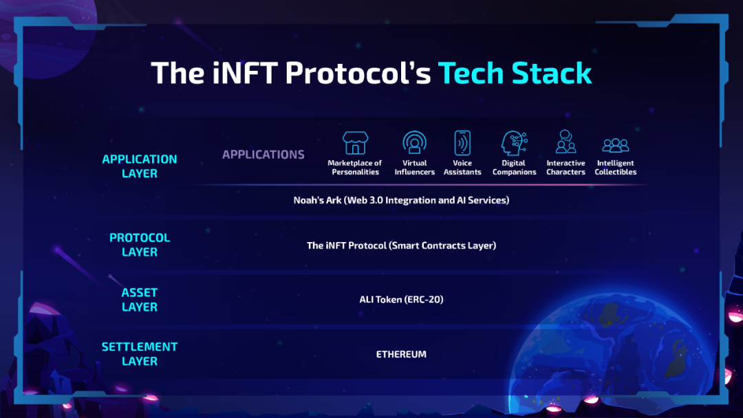 iNFT 基本的智能与个性特征确定后,智能便从为智能元宇宙提供动力的人工智能 (AI) 引擎流向了 iNFT。iNFT 可以利用来自诺亚方舟的 AI 引擎的智能来为其 Personality Pod 提供动力,并为诺亚方舟的访客提供 AI 服务。