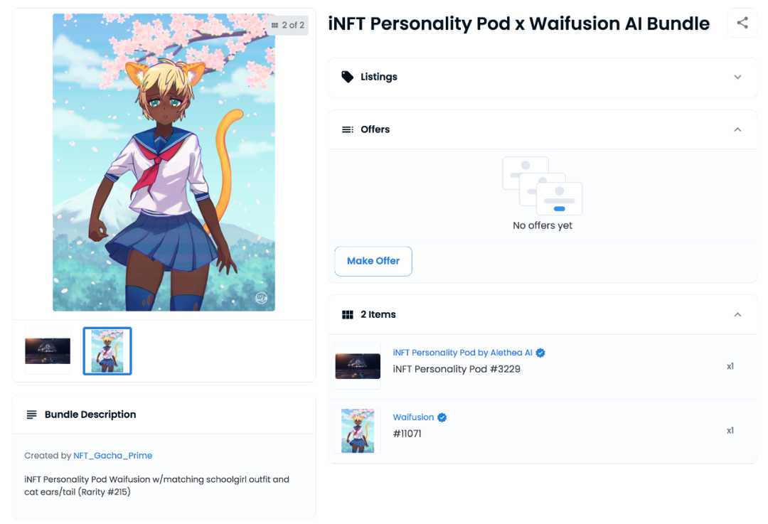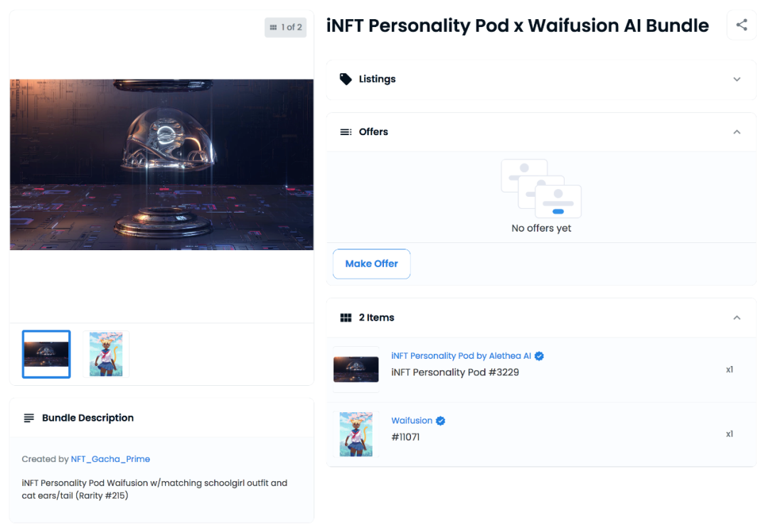 iNFT 协议构建完成后可支持 NFT 与另一个称为 Personality Pod 的 ERC-721 资产融合,由此获得 iNFT 自己独特的智能和个性。