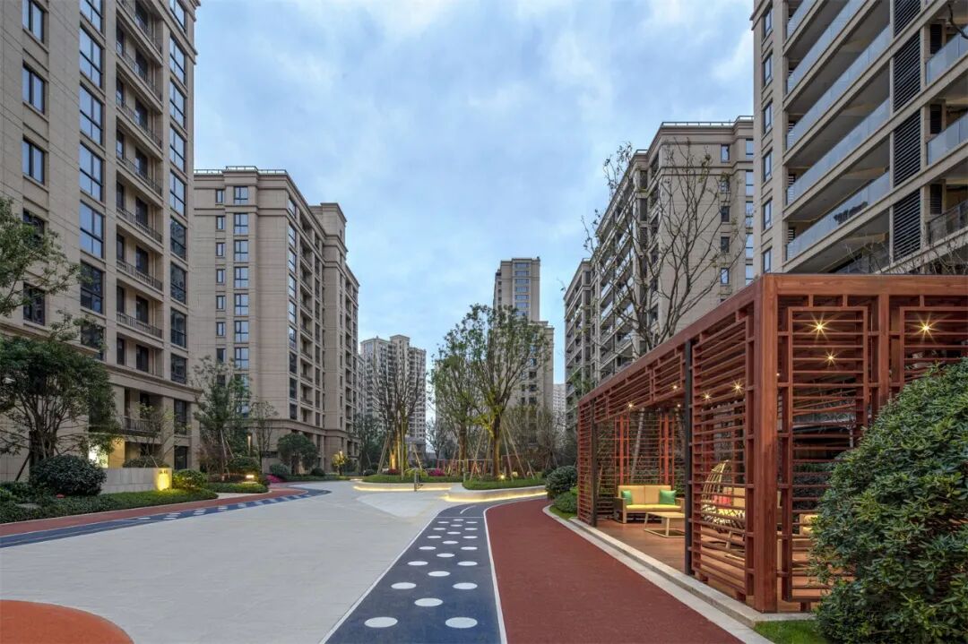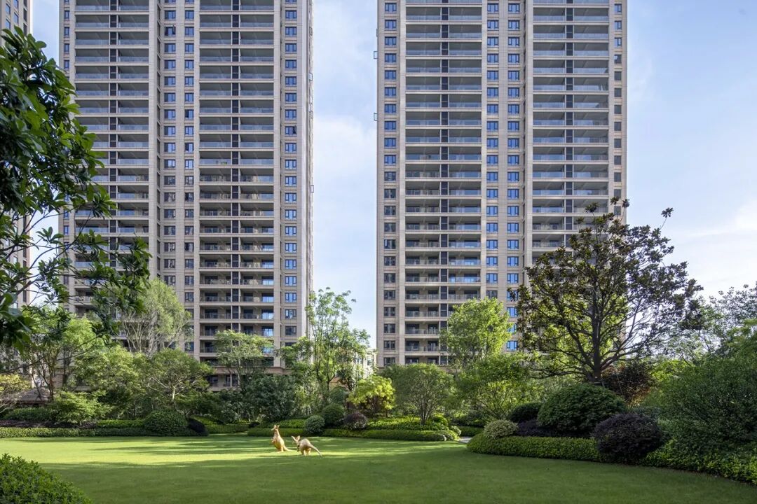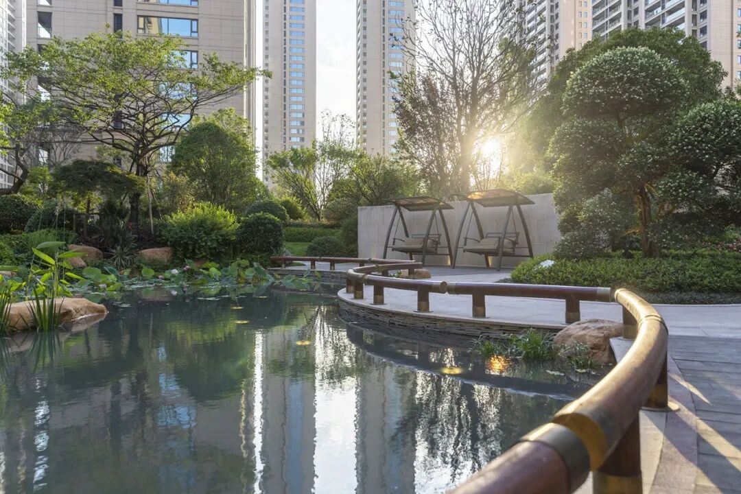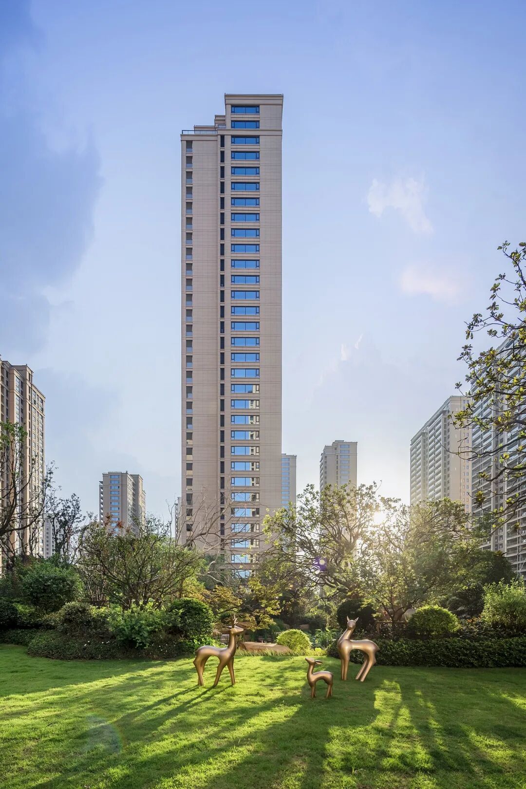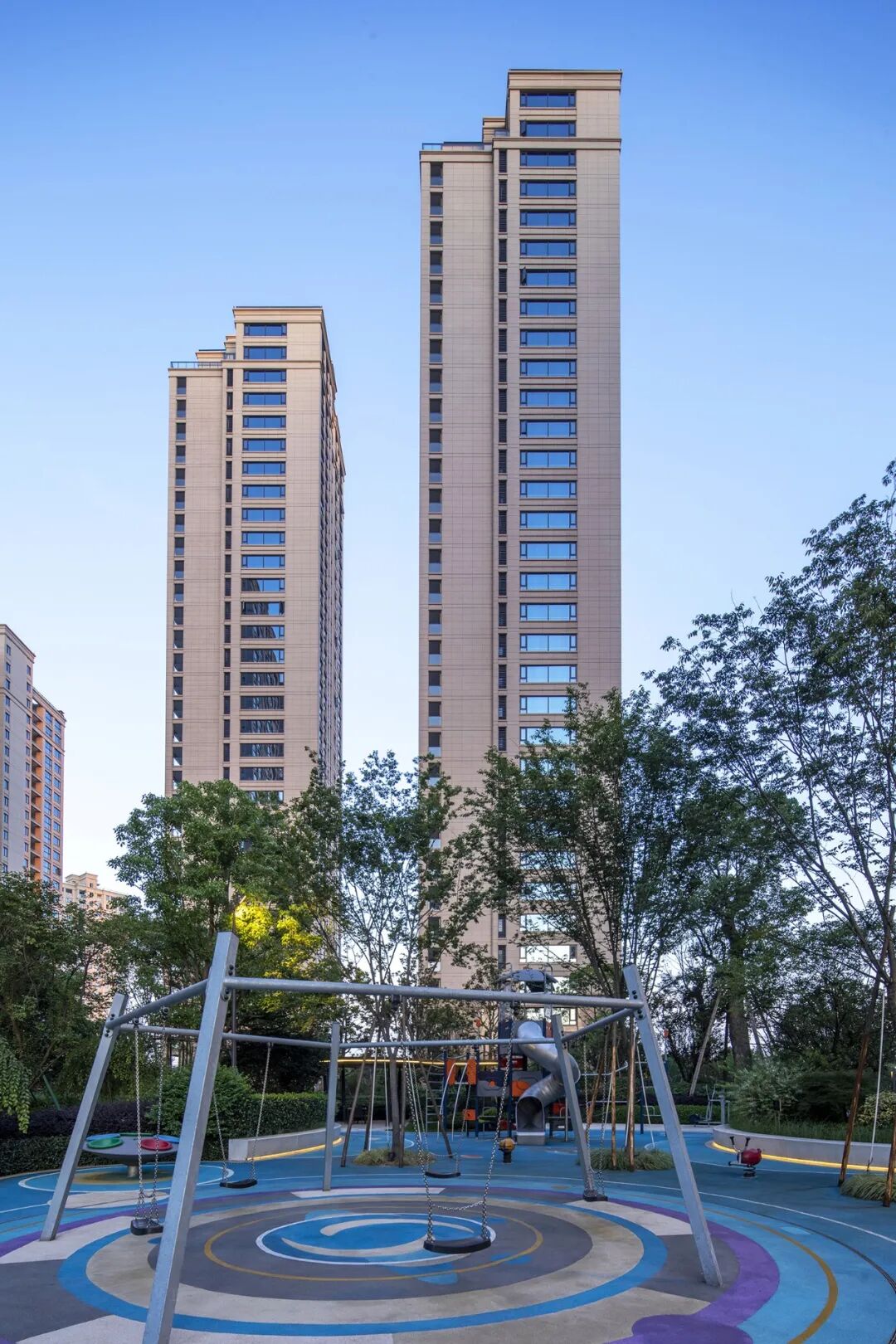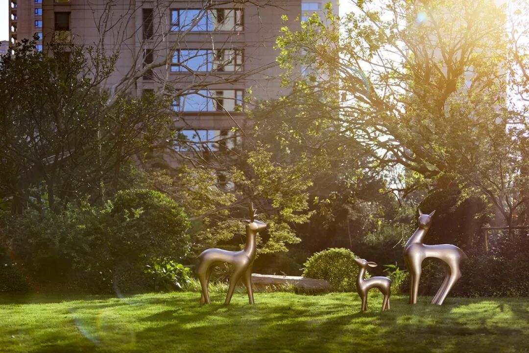 小鹿在草地里等待,蝉在树枝上鸣叫,海棠花在身后盛开,阳光踩在鞋底下面。春萌夏盛秋熟冬寂静,时光有序,四时变化都写进风景里。从不同季节的色彩、植株的高度行径、开花结果的形态等排列组合,最终绘成业主们眼前一幅幅自然画卷。在这里孩童自由奔跑,少年从容读书,青年幸福牵手,中年下棋交友,老年悠闲漫步,在绿意盎然中享受难得的平静。