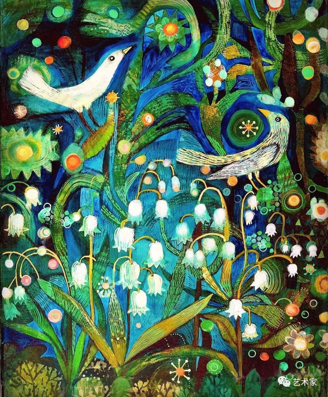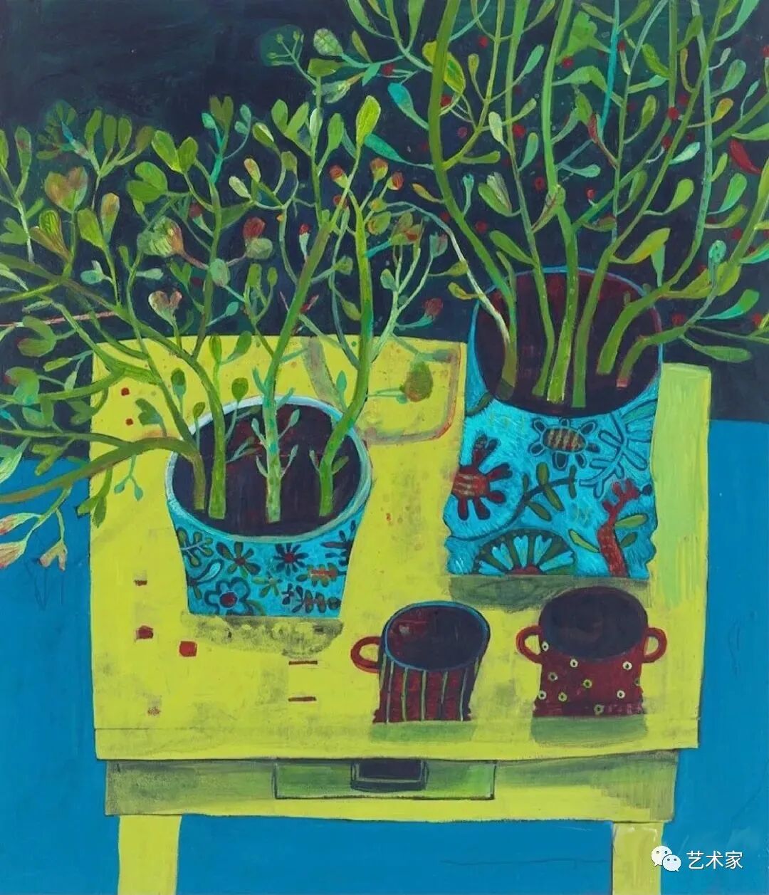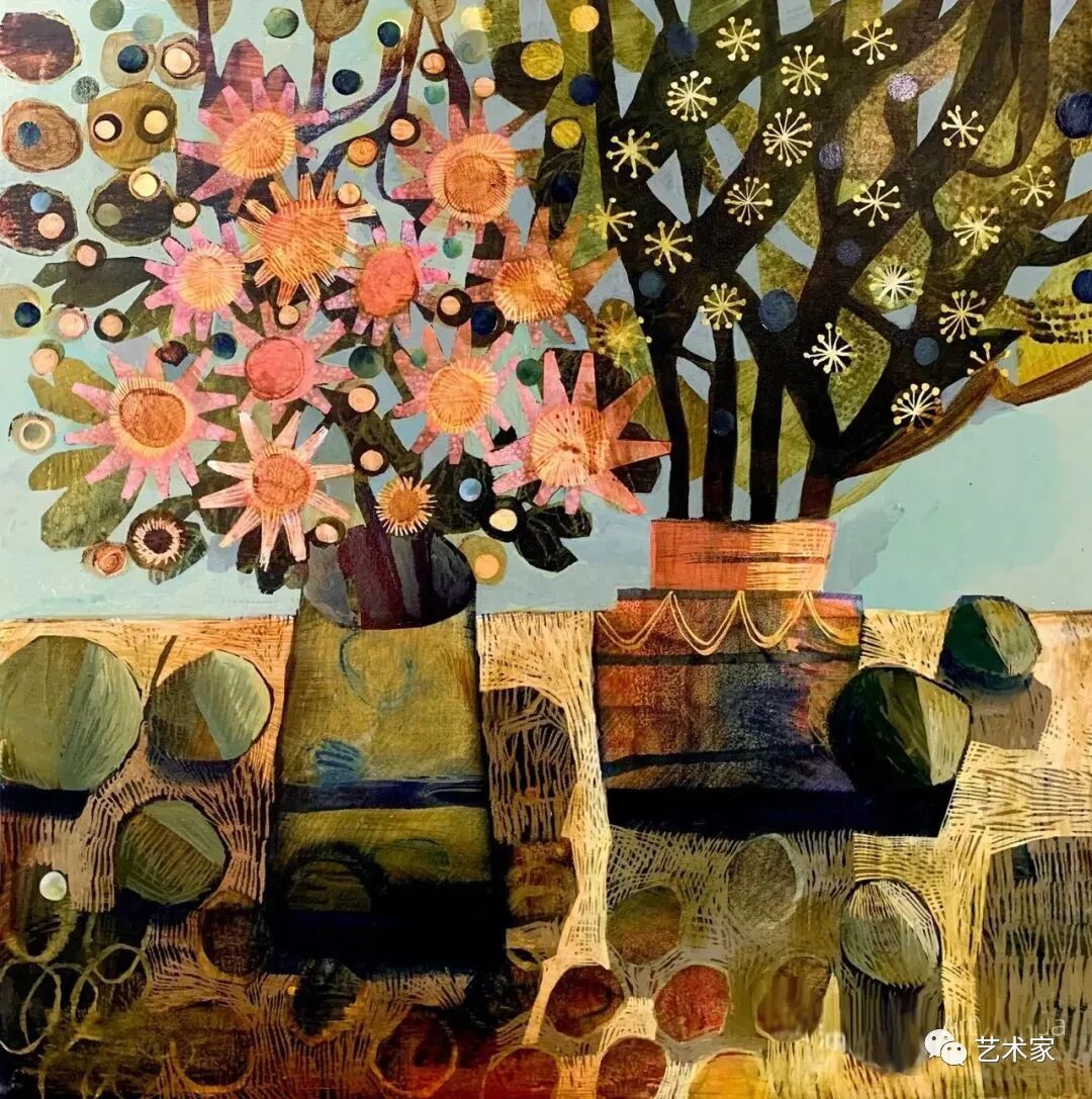 创作艺术让我感到有活力。它来自于一种深深的创作需求,这种需求从我记事起就一直伴随着我。在我的作品中,色彩是一个主要元素,运用在层次上,创造的意图是惊喜,唤起平静的情绪和快乐的感觉。灵感来自自然和季节,标志性的植物形式和有机形状总是存在,使用绘画过程和技术的结合。