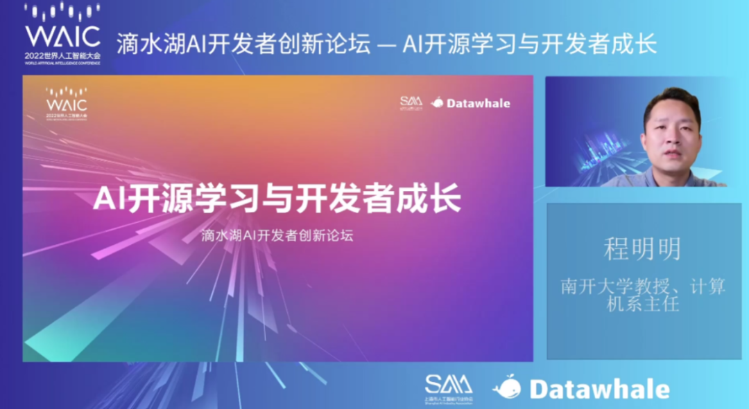 在本届世界人工智能大会期间,持续三日的“滴水湖AI夜话”活动暨AI开发者创新论坛系列活动成功举办。本次活动聚焦全球人工智能开发者群体最关心的话题,邀请了世界知名的院士、学者、技术专家、开发者社区领袖、产业代表等60余位嘉宾,通过3场夜话、6场AI开发者创新论坛的线上论坛,全面覆盖人工智能领域最具前沿性、领先性的话题,触达数百万观众,为WAIC 2022打造了持续不断的线上智慧盛宴。