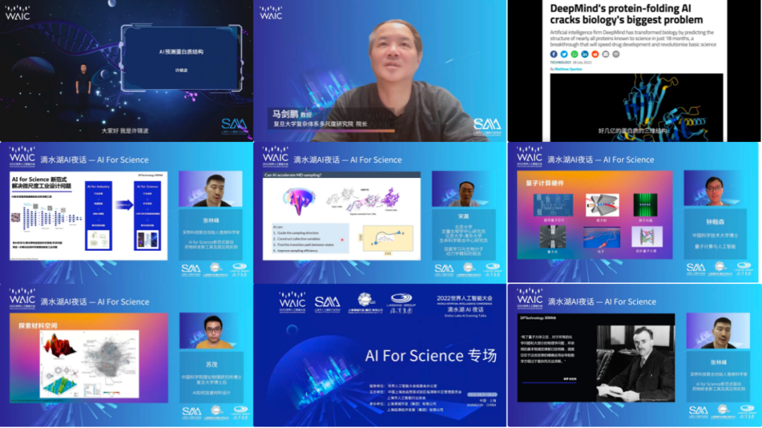 本场夜话还邀请到深势科技联合创始人、首席科学家张林峰、北京大学定量生物学中心研究员,北京大学-清华大学生命科学联合中心研究员宋晨、中国科学技术大学博士钟翰森、中国科学院理论物理研究所博士,复旦大学博士后苏茂,就人工智能在多个科研领域的最新进展和突破进行了深入的分享。