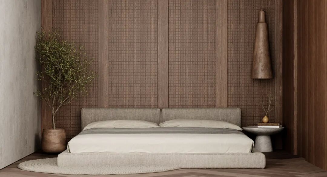 Walking through the corridor to the bedroom, the high-grade gray-colored bedding, with various forms of wooden furniture or facilities, is full of texture. The tatami window in the bedroom allows residents to have a better resting experience.