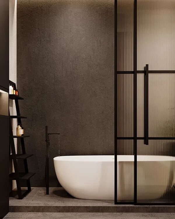 The mottled gypsum wall in the bathroom adds a lot of texture to the interior. It is decorated with some simple metal facilities. The interior facilities are exquisite and beautiful. Under the illumination of the built-in light strips, different metallic luster is reflected.