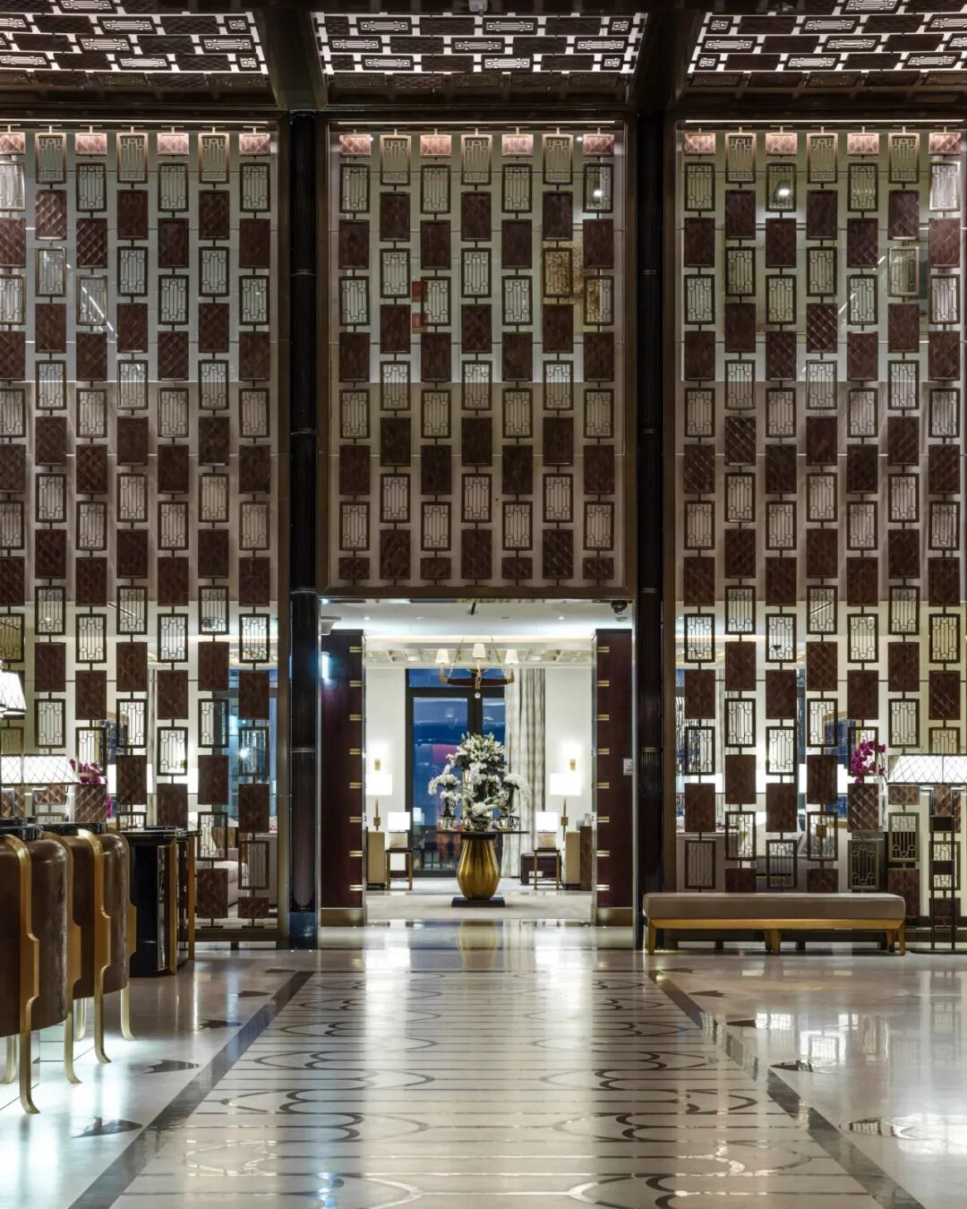 多哈文华东方酒店是英年早逝的传奇室内设计师 David Collins 去世前最后亲自指导的重大项目。他执迷 20 世纪初的中古手工装饰技艺,也以奢华复古、高级材料丰富叠加的设计风格著称。