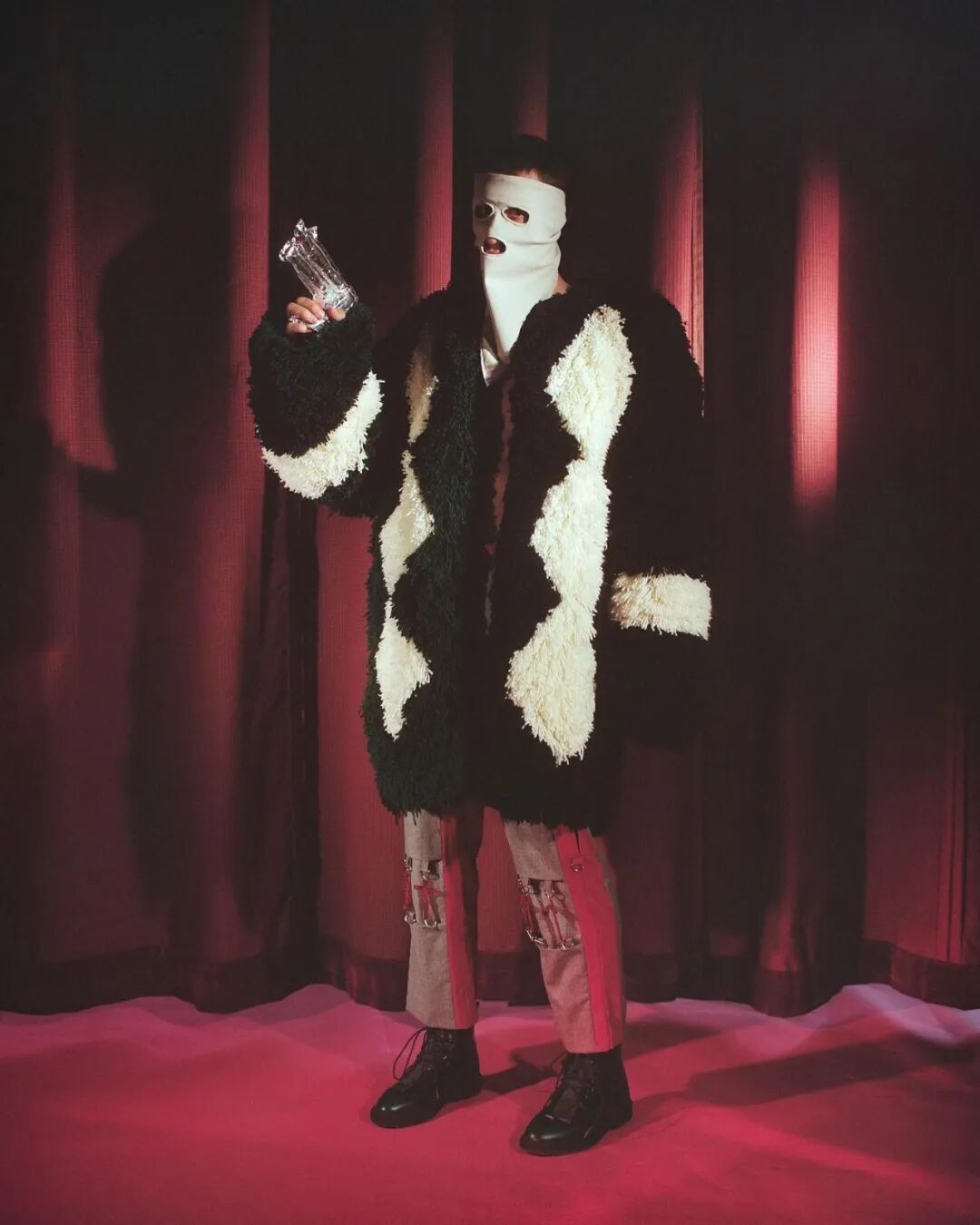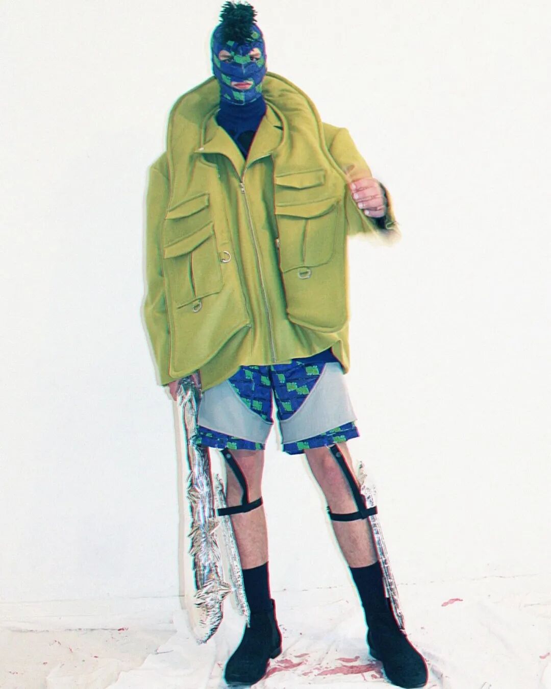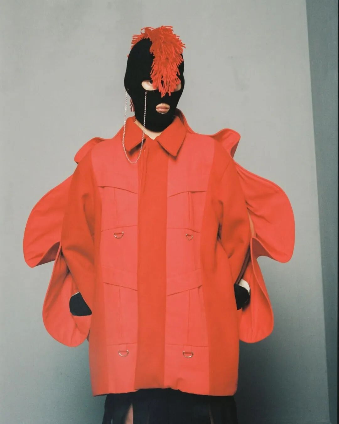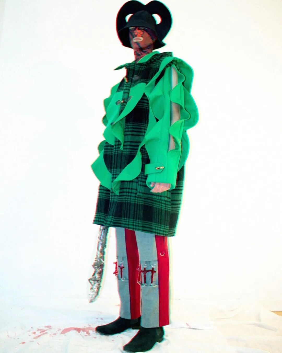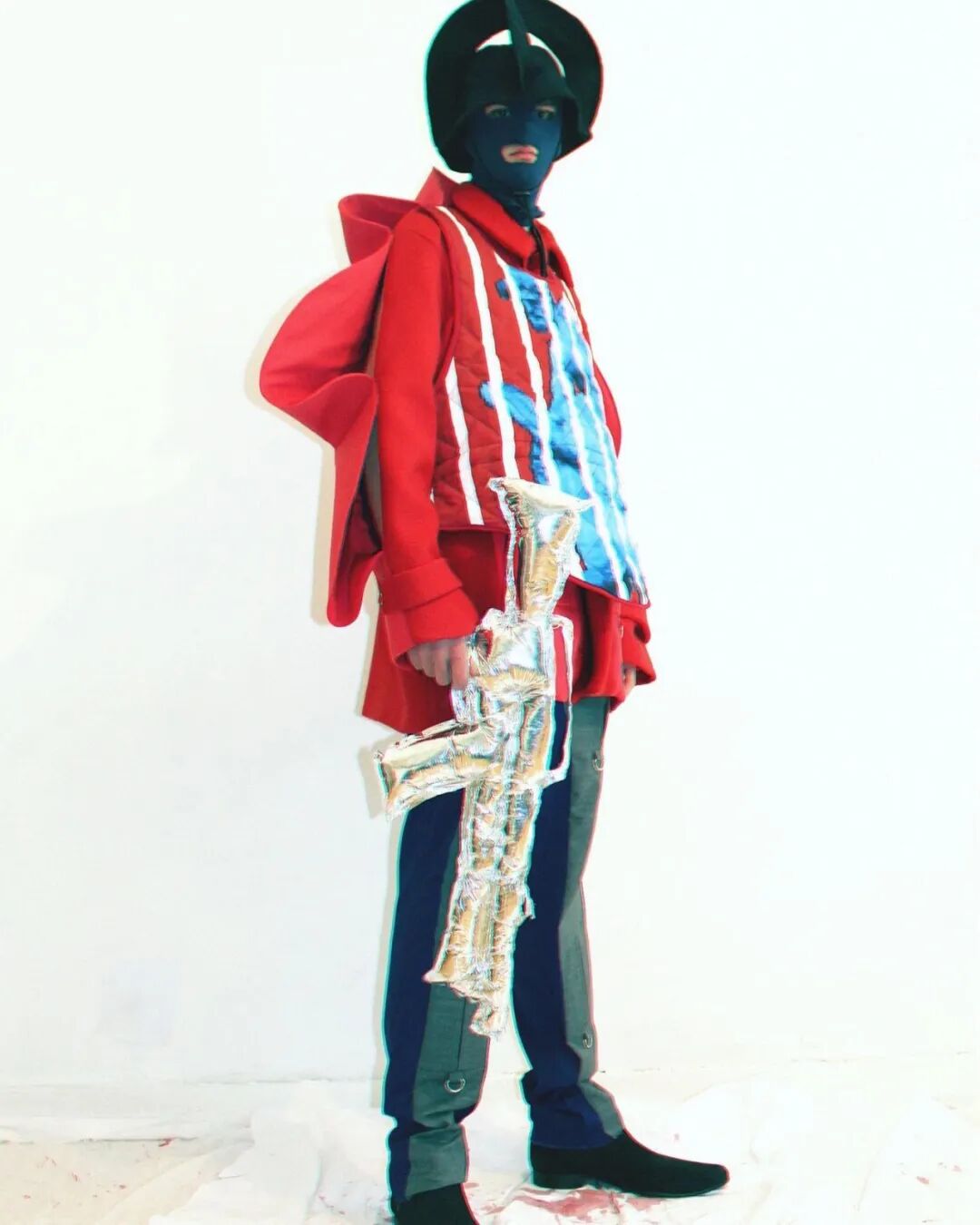 “我开始我的系列时,想到了我们生活在一个破坏性的世界。每当我们打开新闻,就发现一些坏事情正在发生:全球变暖,乌克兰的战争等等。我只是想说,如果我们继续这样生活下去,有一天我们会灭绝。”为了把这一点融入服装,他使用了一些破坏性的洞和骷髅的想法和图像,编入服装后,他将这些意象与他自己的朋克美学相混合,以提高人们的认识。