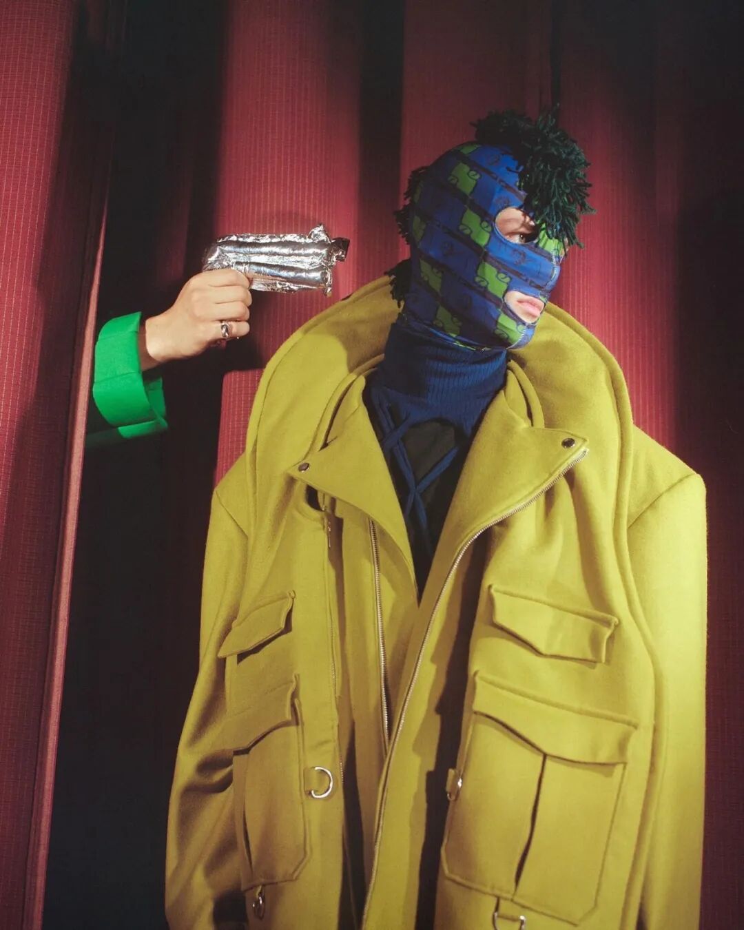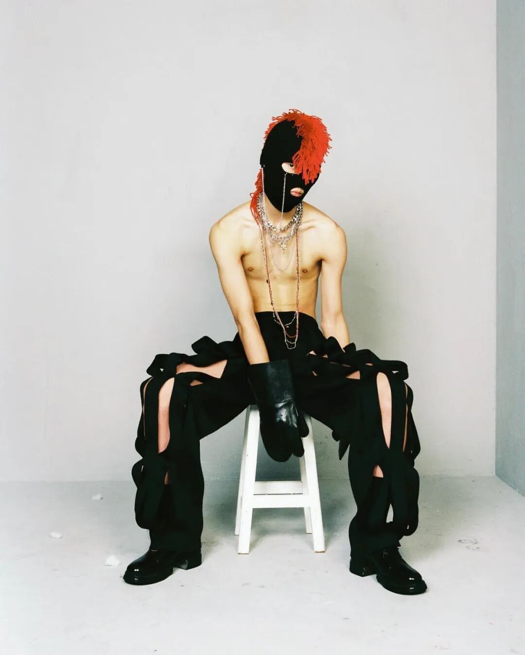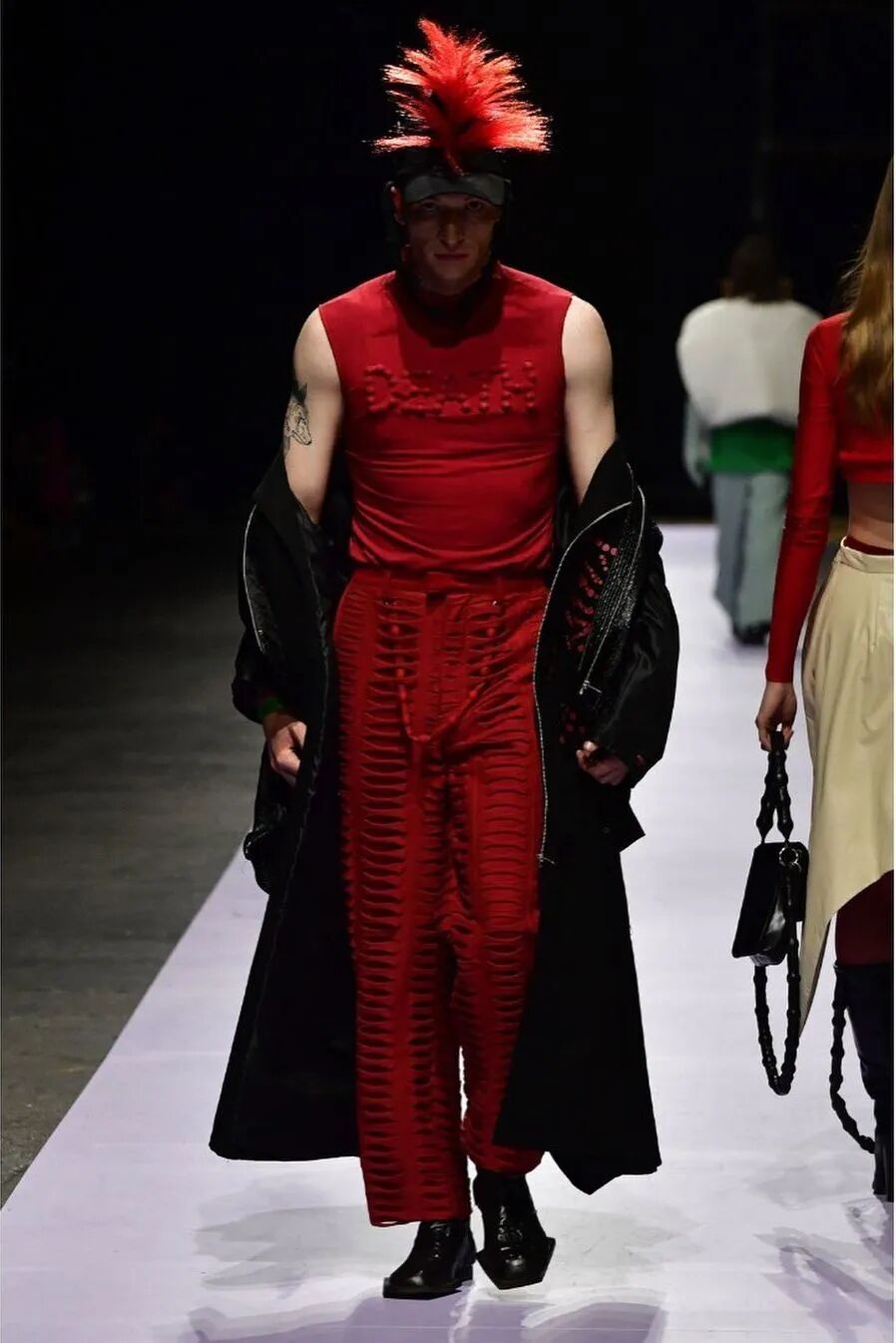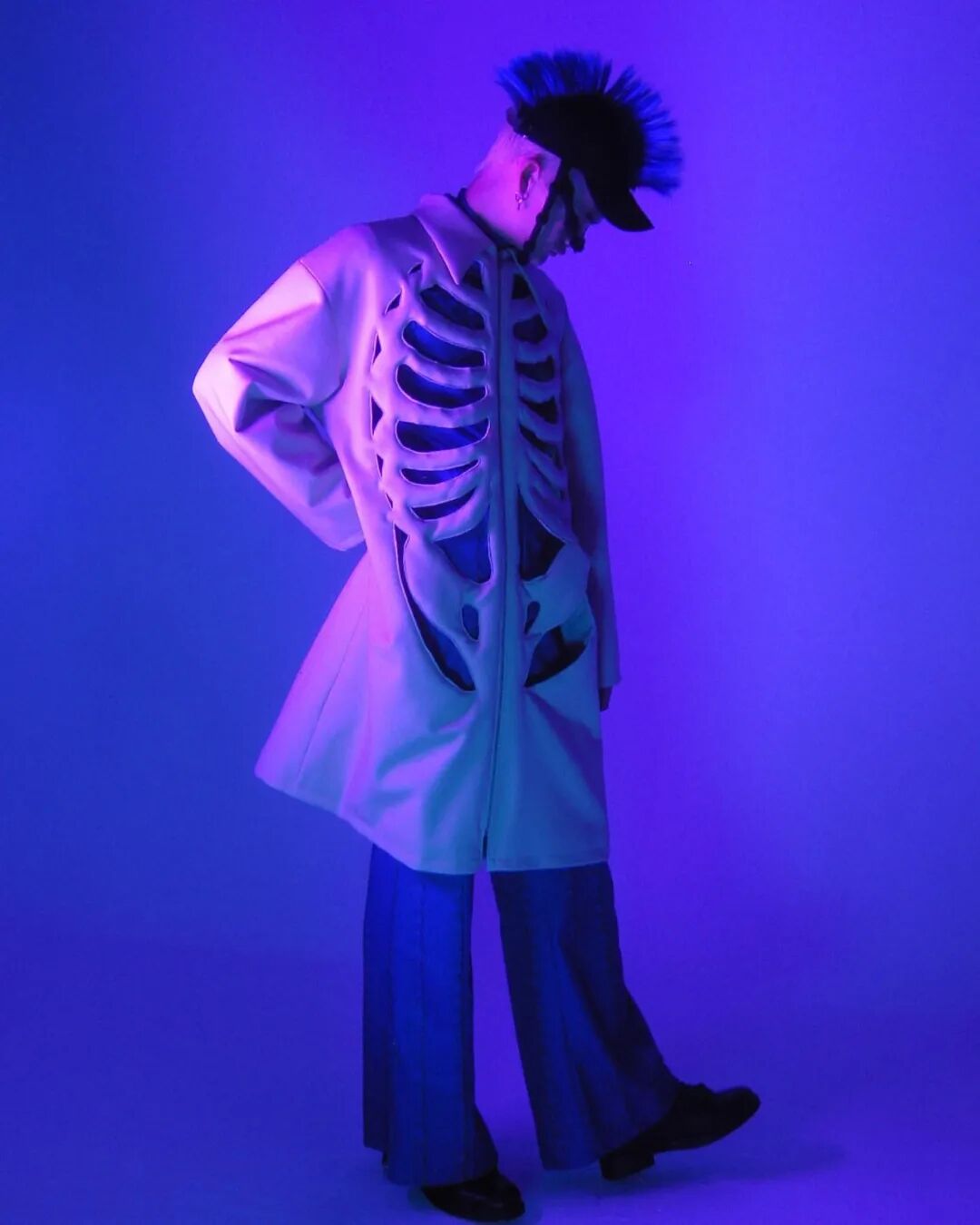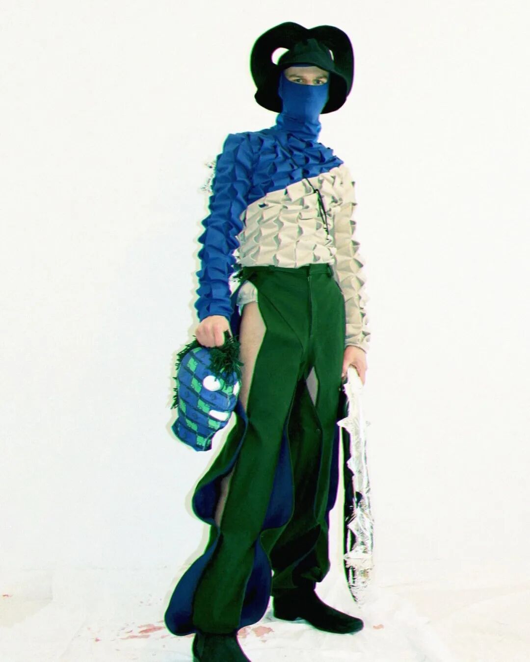 “我开始我的系列时,想到了我们生活在一个破坏性的世界。每当我们打开新闻,就发现一些坏事情正在发生:全球变暖,乌克兰的战争等等。我只是想说,如果我们继续这样生活下去,有一天我们会灭绝。”为了把这一点融入服装,他使用了一些破坏性的洞和骷髅的想法和图像,编入服装后,他将这些意象与他自己的朋克美学相混合,以提高人们的认识。