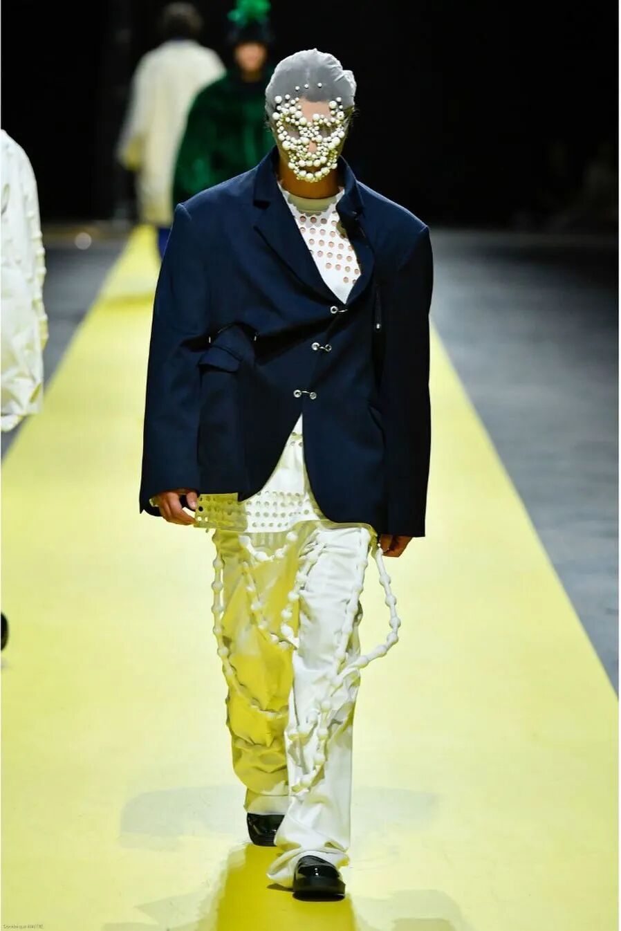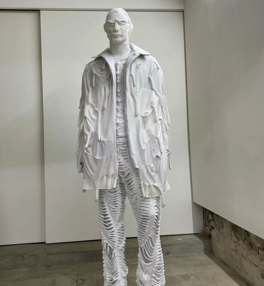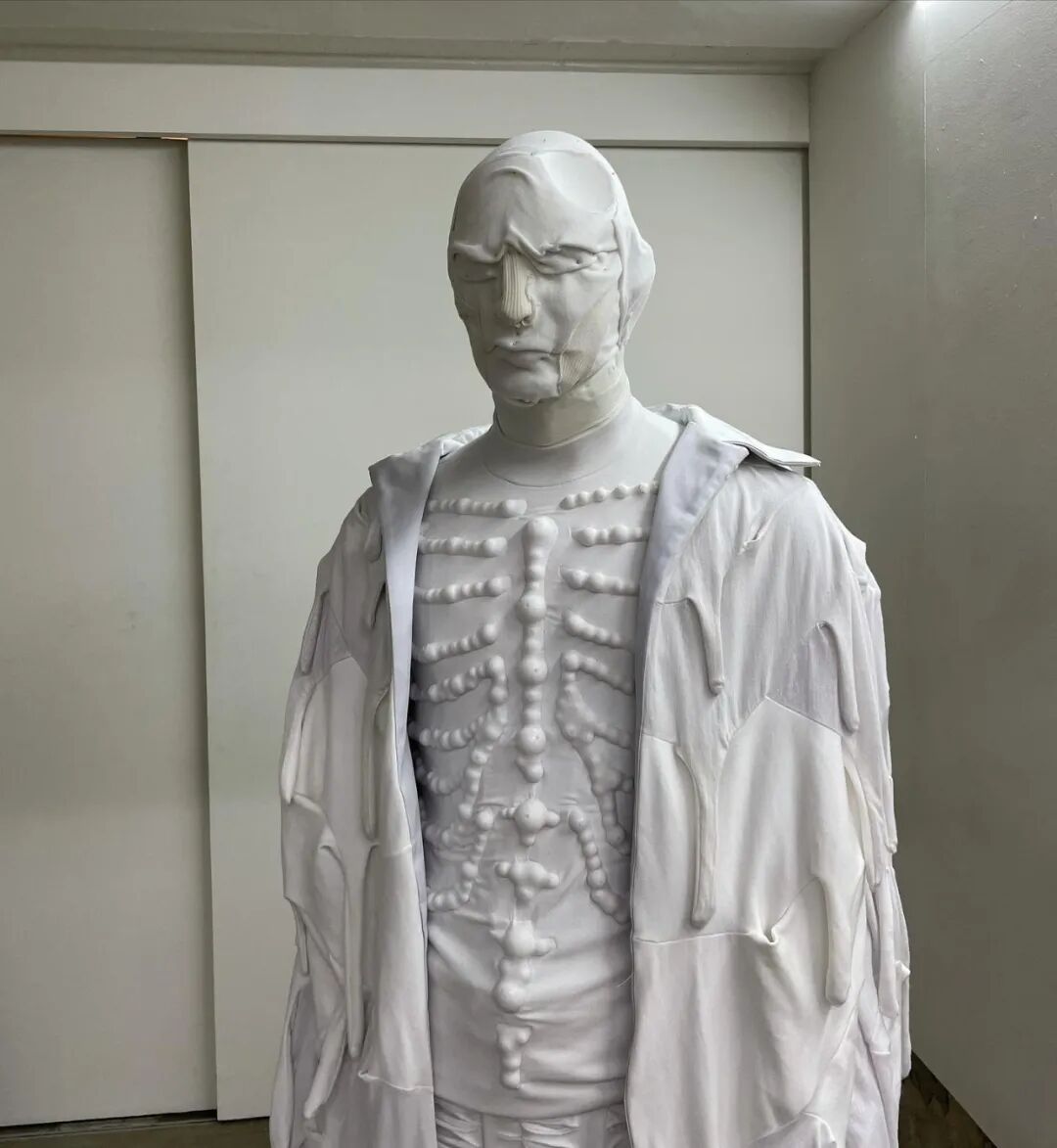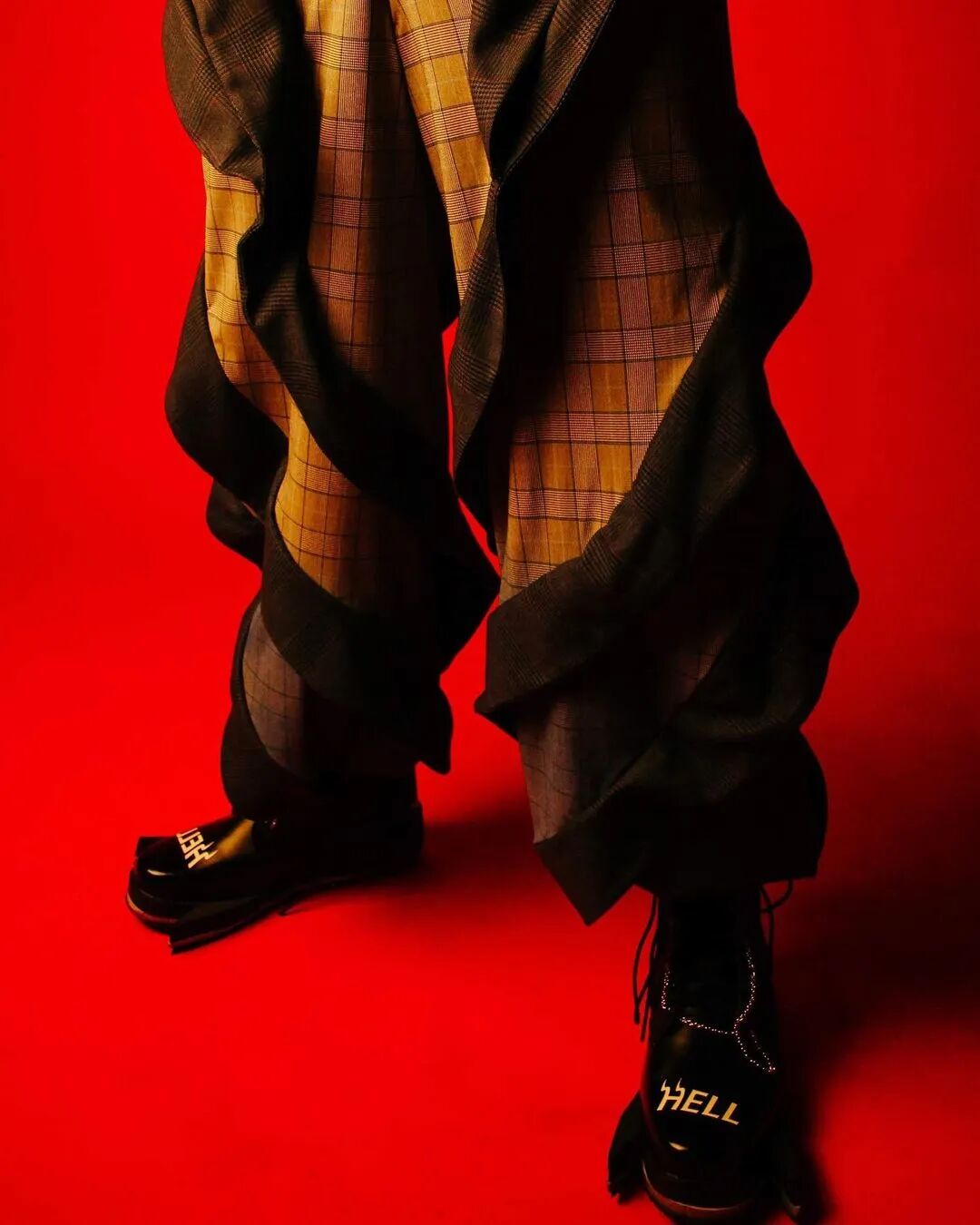 “我开始我的系列时,想到了我们生活在一个破坏性的世界。每当我们打开新闻,就发现一些坏事情正在发生:全球变暖,乌克兰的战争等等。我只是想说,如果我们继续这样生活下去,有一天我们会灭绝。”为了把这一点融入服装,他使用了一些破坏性的洞和骷髅的想法和图像,编入服装后,他将这些意象与他自己的朋克美学相混合,以提高人们的认识。