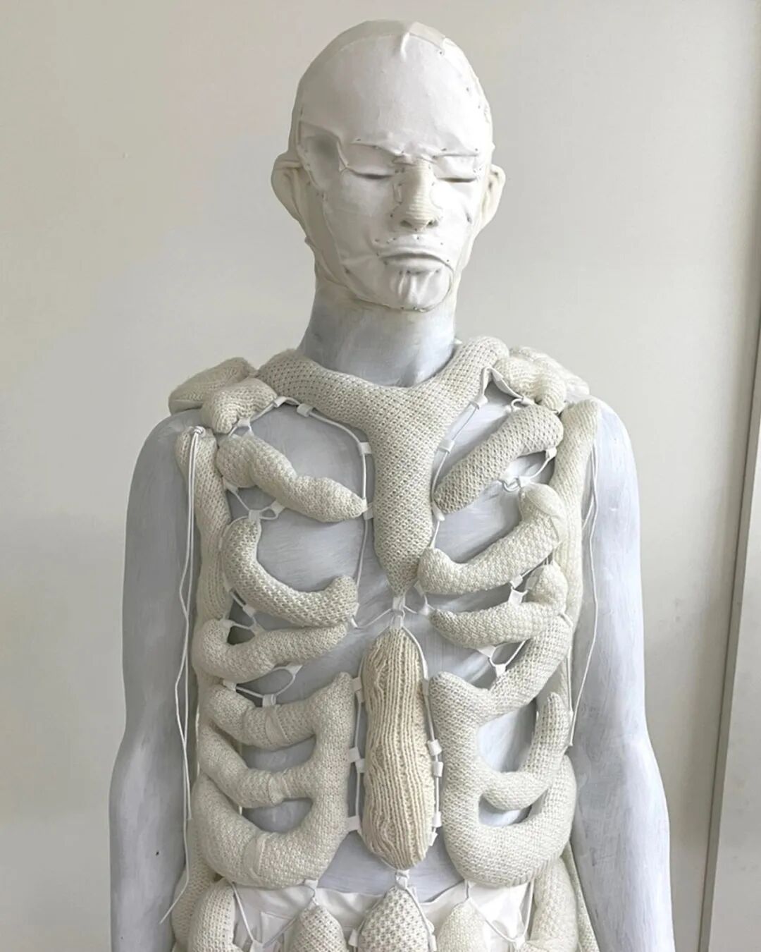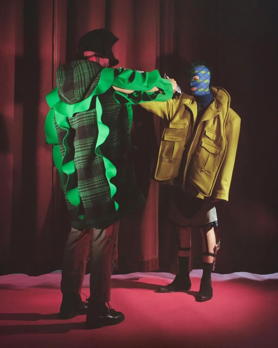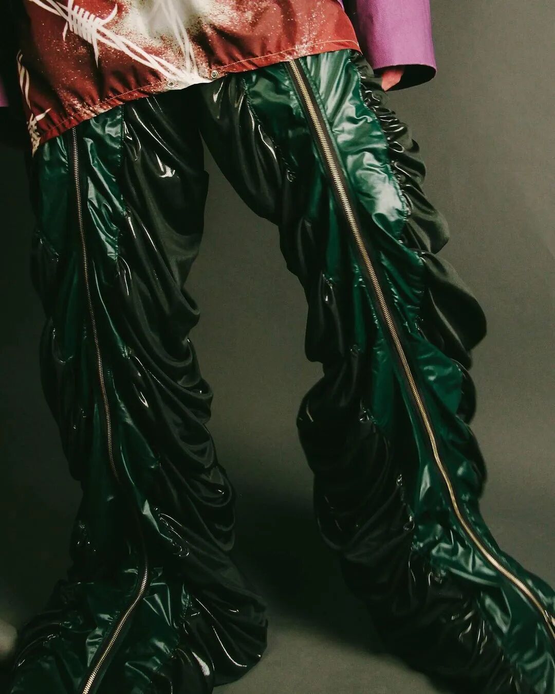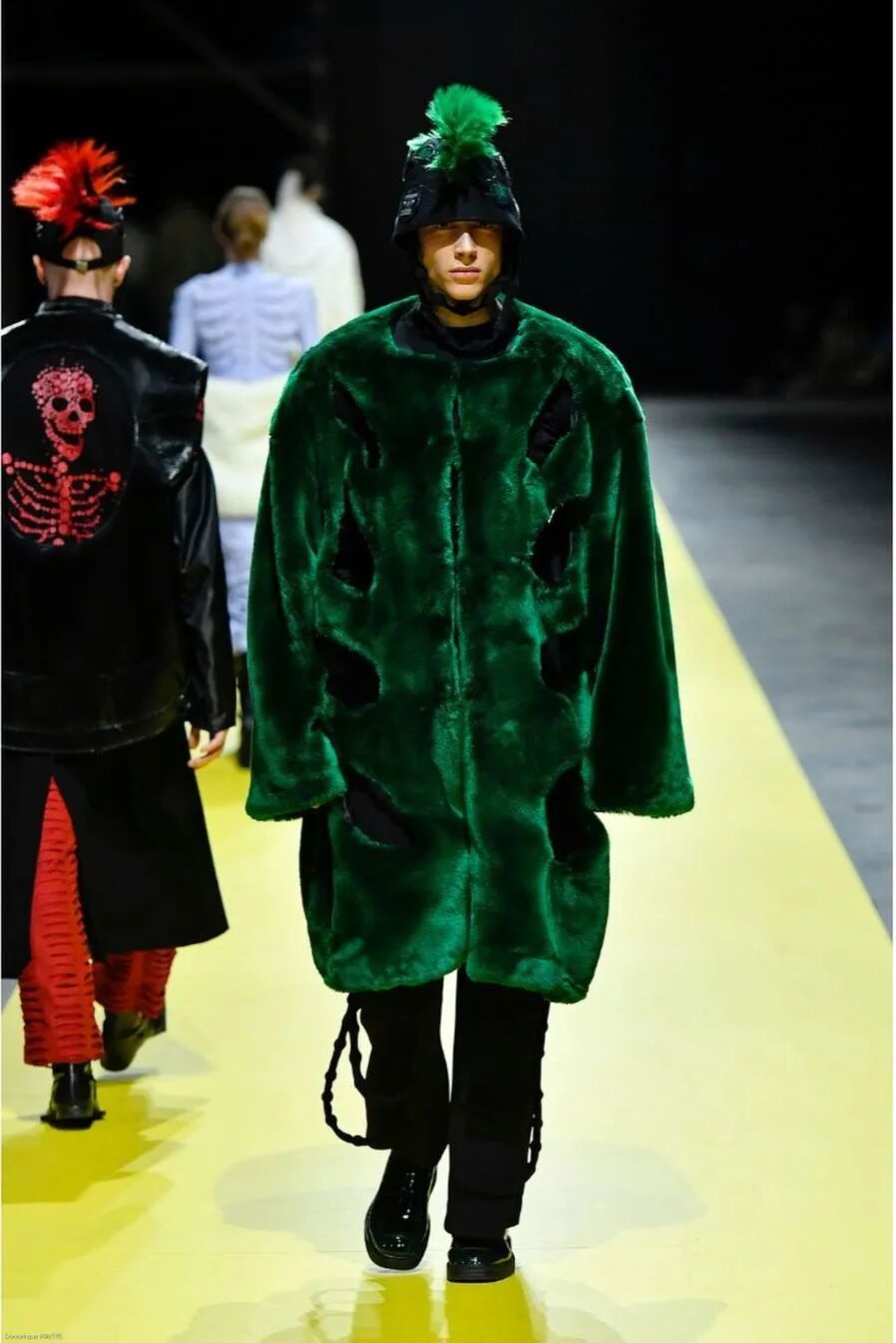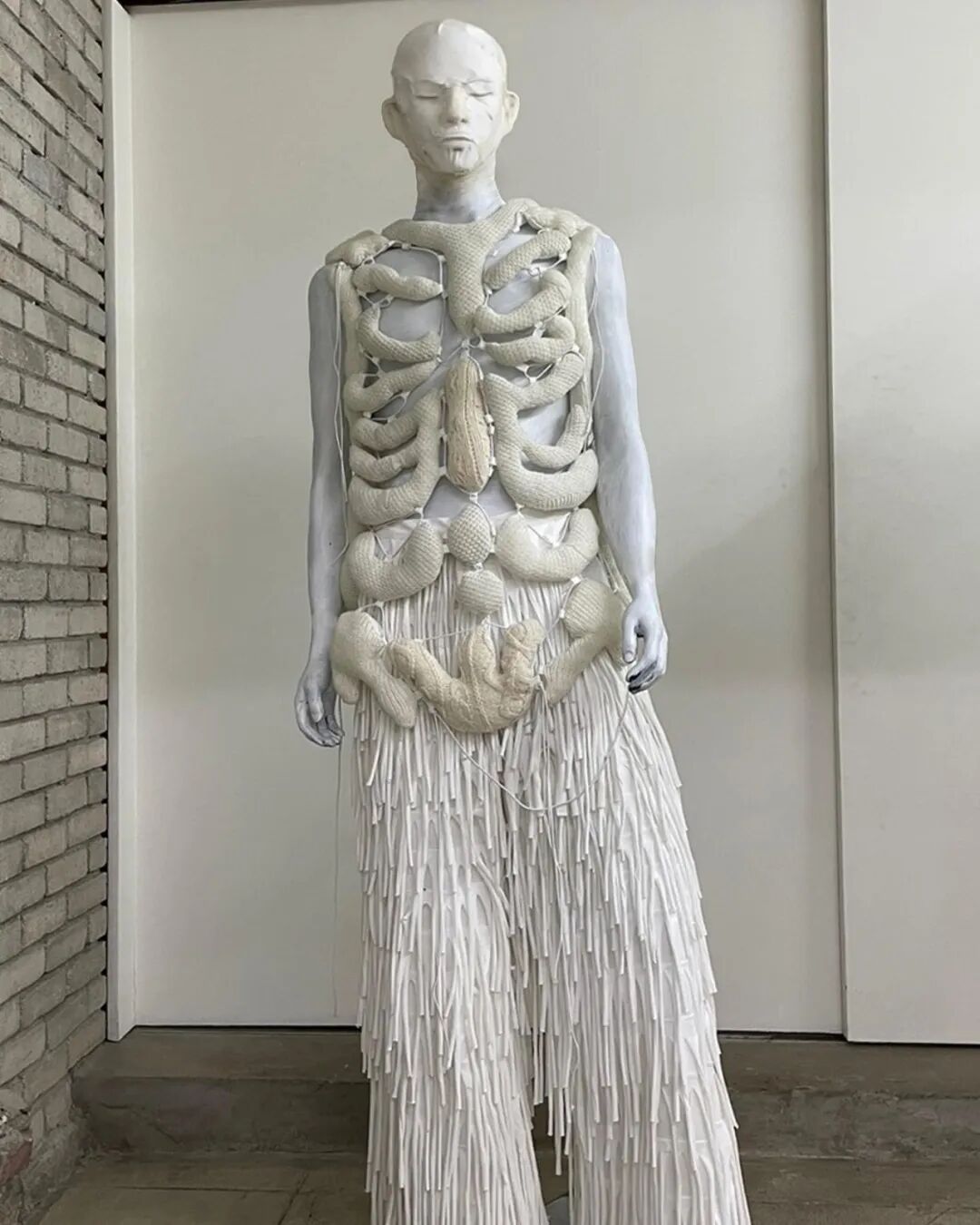 “我开始我的系列时,想到了我们生活在一个破坏性的世界。每当我们打开新闻,就发现一些坏事情正在发生:全球变暖,乌克兰的战争等等。我只是想说,如果我们继续这样生活下去,有一天我们会灭绝。”为了把这一点融入服装,他使用了一些破坏性的洞和骷髅的想法和图像,编入服装后,他将这些意象与他自己的朋克美学相混合,以提高人们的认识。