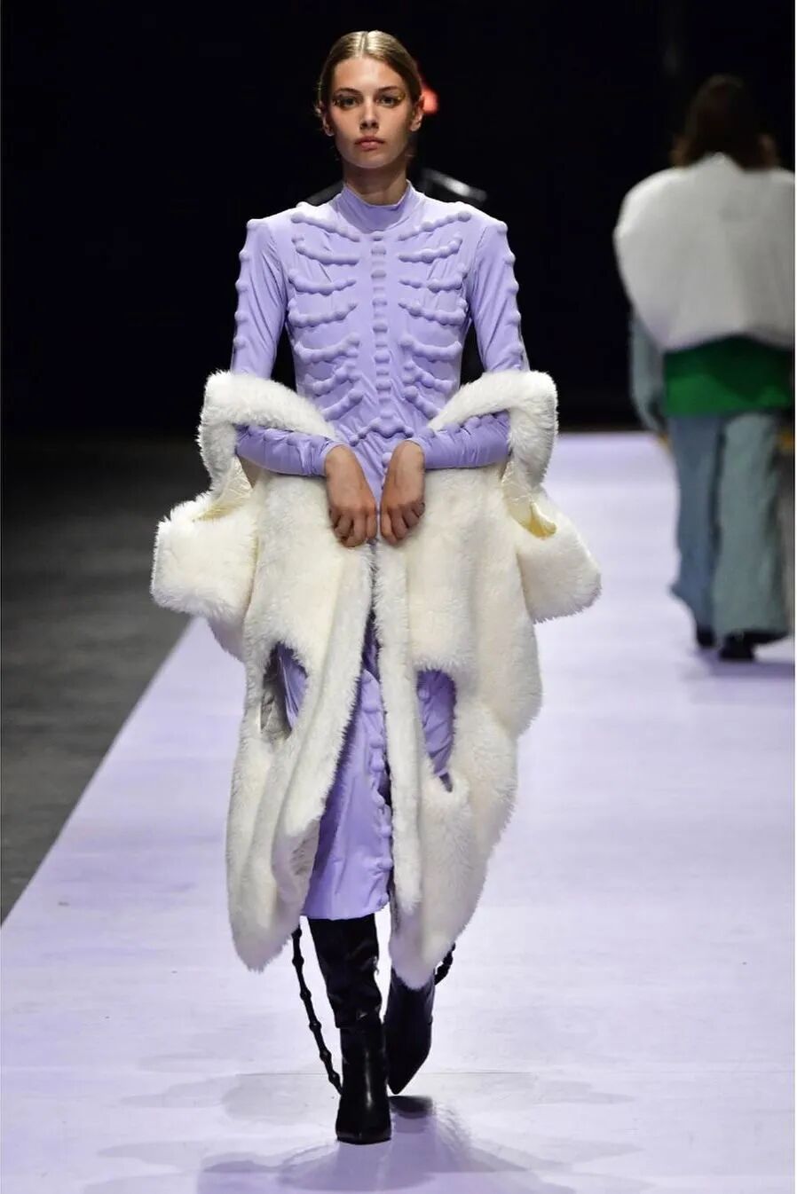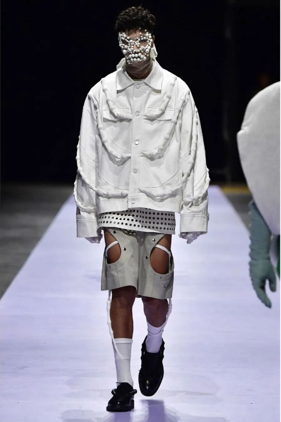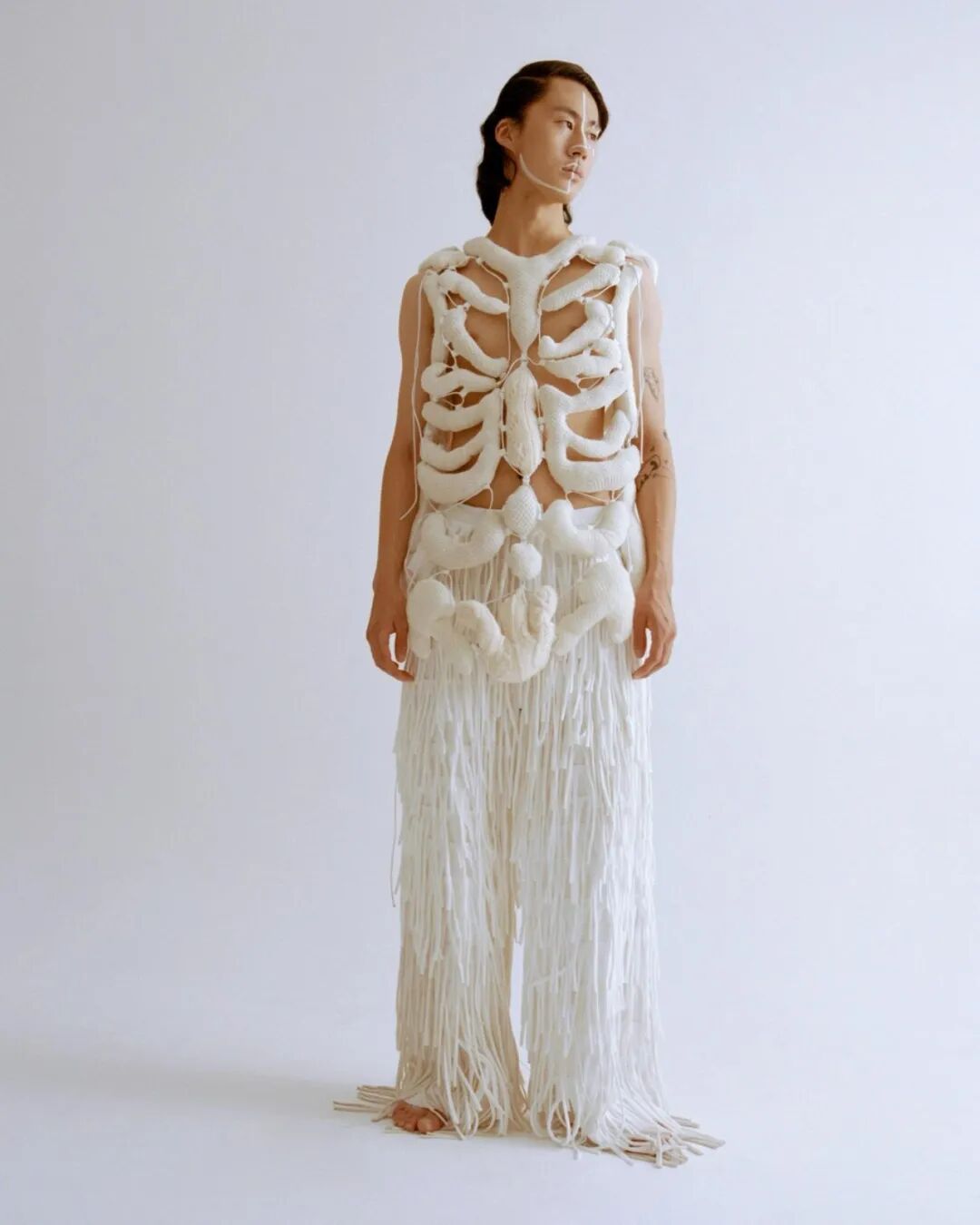 Yeongho Ko说,“我的灵感来自于灾难和灭绝的破坏性图像,如天坑、骷髅和化石。我把这些图像与朋克混合起来,转化为服装。”