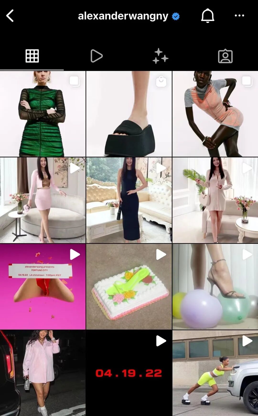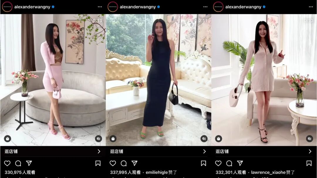 Alexander Wang 今年4月份在 IG 的视频,品牌找来了大名鼎鼎的淘宝中老年服饰模特梁晓晴带货,刚发布就引来了品牌的极大关注与曝光度,梁晓晴的摆拍视频曾一度在TikTok上掀起模仿秀。