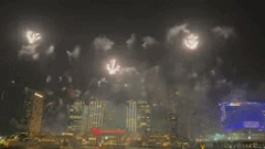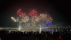 绿色、黑色、白色和红色的烟花混合点缀着天空,长廊,与周围的建筑、水面融为一体,引得观众在一边拍手叫绝。他们在5.4公里长的海滨,欣赏阿布扎比的美丽景色,感受着烟花的璀璨与绚烂。