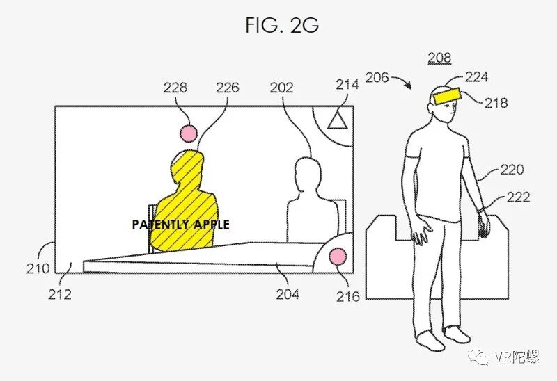 苹果公司的专利图2G说明了根据激活的缺席模式来显示虚拟对象的示例。如图2G所示,例如,在离开会议时,物理用户#206可以通过启用缺席模式提供他暂时缺席的指示。在一些实施方案中,用户在从椅子上站起来之前激活了缺席模式。