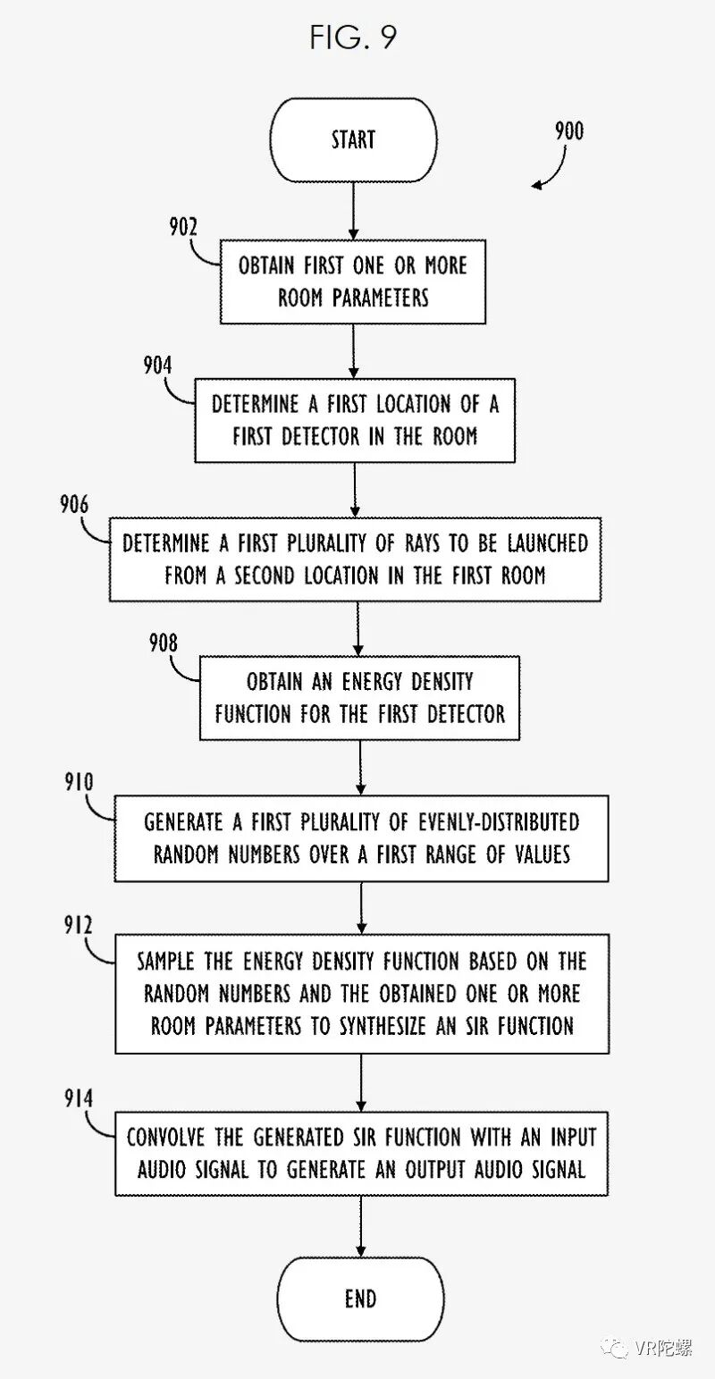 苹果公司的专利图9提出了一个流程图,说明了执行改进的空间脉冲响应(SIR)生成算法的另一种方法。