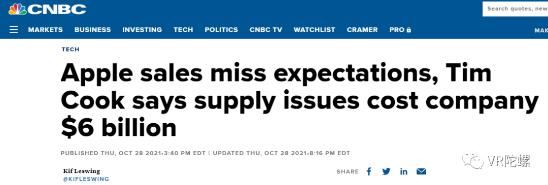 全球供应链短缺对科技行业产生了巨大影响。众所周知,下一代游戏机和英伟达 30 系列显卡都很难买到,甚至苹果也受到影响,库克在接受CNBC采访时表示最近一个季度因供应链限制而损失了 60 亿美元。