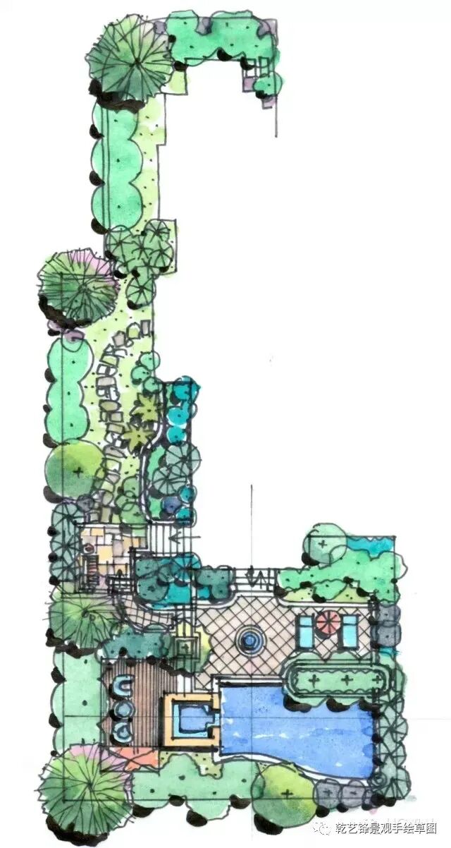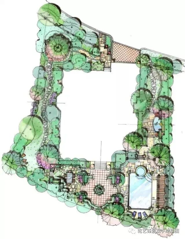 图面表达表现力不够:1.线条不直及顺畅 2.植物的图案大小比例需要优化,及植物配置可以再细化,3.场地的标高需要标注 4.色彩的颜色表现偏弱,整体色调需要通过临摹及学习好的案例强化。如作为完整的方案,需要增加意向图,表达每个区域的空间意向。
