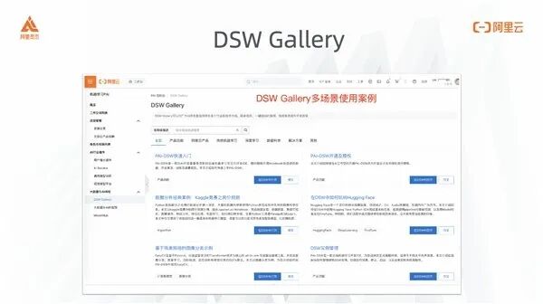 2、发布 DSW Gallery 多场景使用案例,集成阿里内部最佳实践,实现“手把手打造 AI 应用”。内置代码和数据模版,轻松构建业务流程,高效实现业务在平台上的落地。