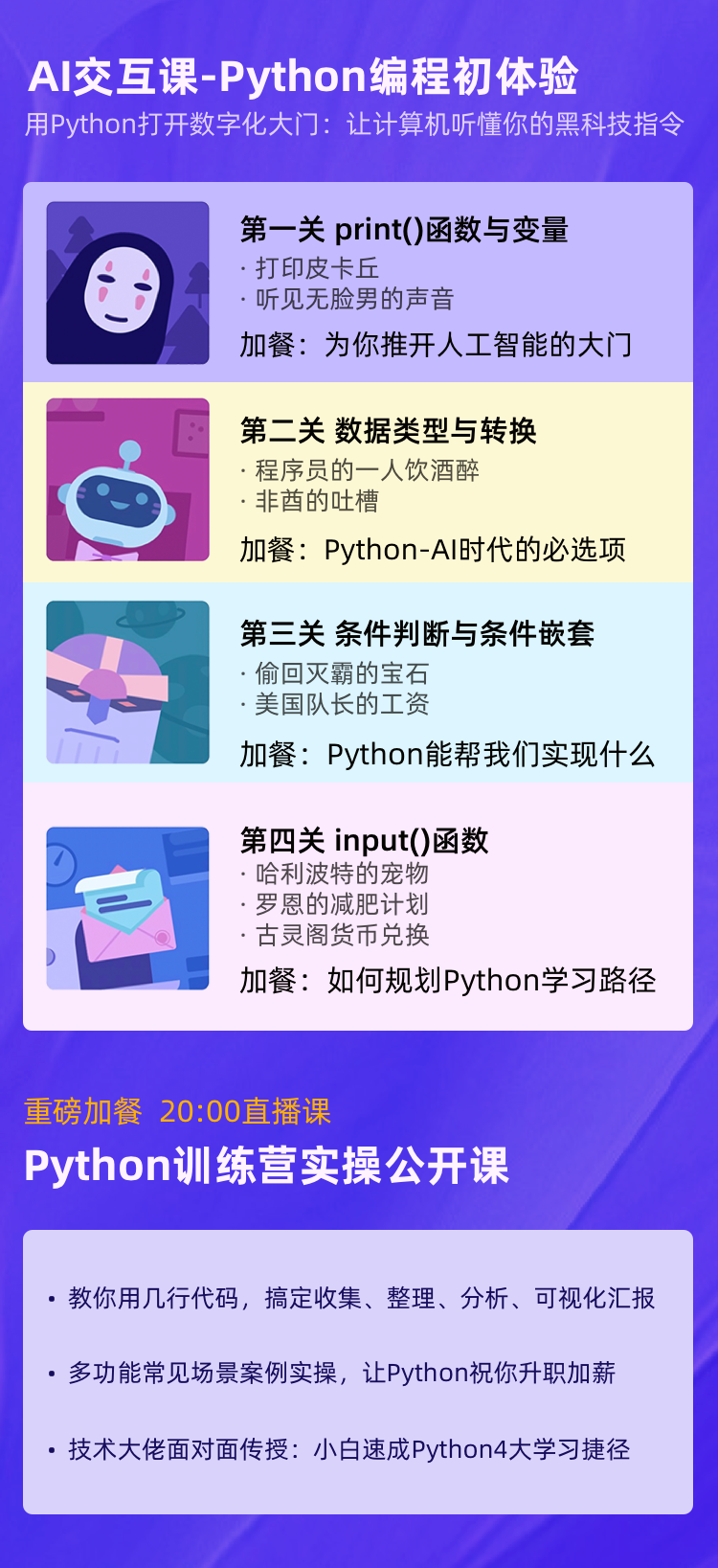 看这有趣的课程表就知道,风变编程Python小课完全不会枯燥、无聊!