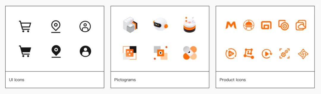 图标作为可视符号,提供了一种 “视觉速记”的形式。它能更好的利用熟悉的形状和隐喻,并以简单的图形形式传达信息。阿里云图标体系由三部分构成,分别是:UI Icon / Pictogram / Product Icon。规范阿里云图标体系,一方面在体验层面保证图标基因元素的一致性,另一方面为设计提效保驾护航。