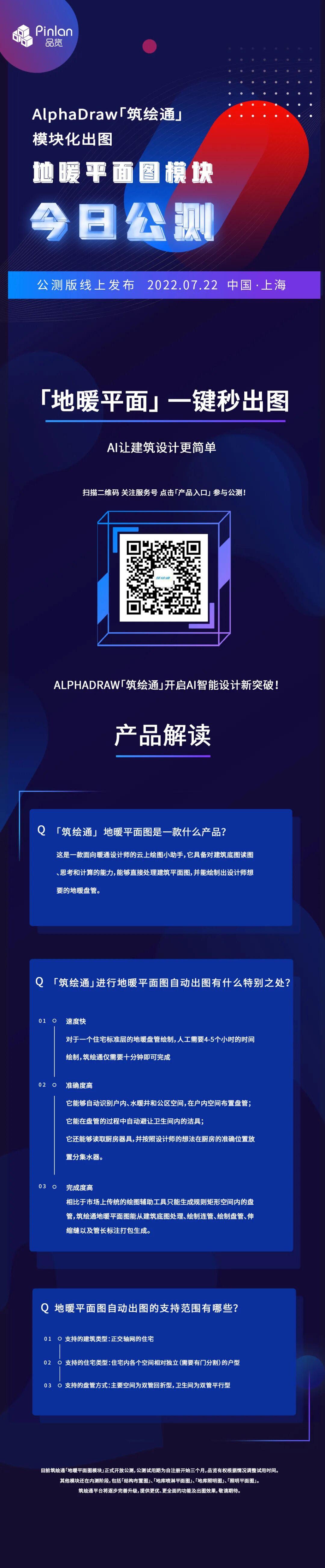 品览是AI建筑设计智造者,专注于建筑设计AI服务,致力于为地产企业和设计院客户提供AI设计出图服务。自主研发的建筑AI智能设计云平台AlphaDraw「筑绘通」,基于计算机视觉技术,建筑设计知识库和生成式强化学习算法帮助客户自动完成施工图设计。仅需上传建筑方案图纸就可以自动完善成套施工图,并符合各地设计规范,助力企业标准化出图、效率质量双提升。