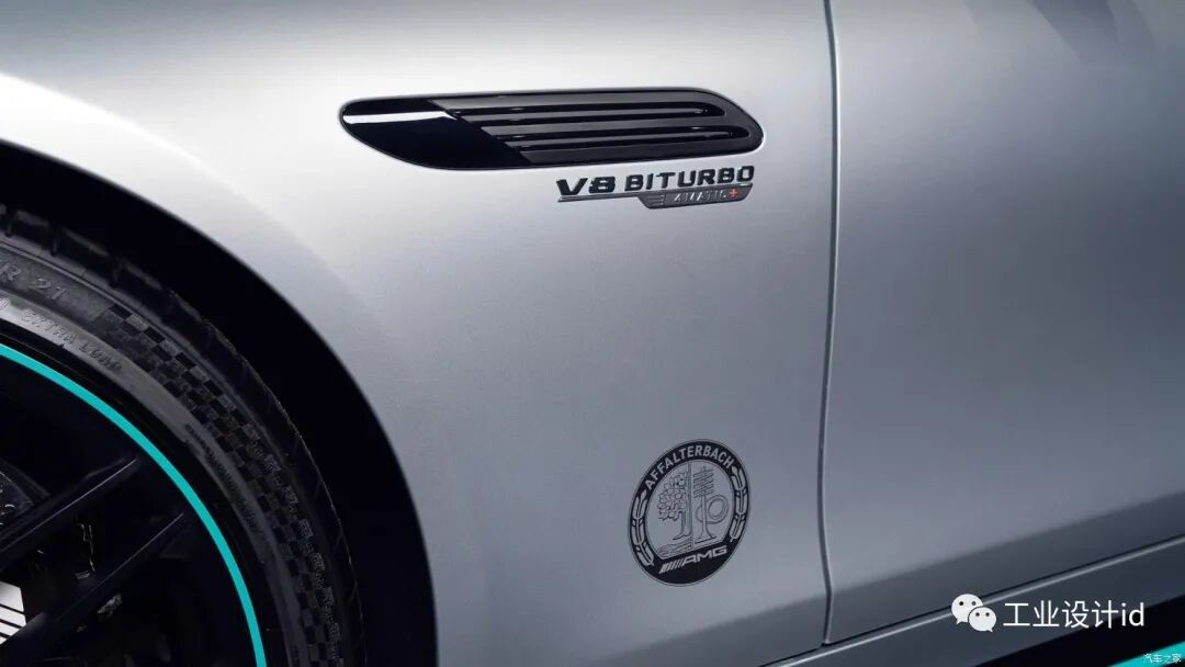 整车采用了前部银色、后部黑色的双色车身和大量空气动力学套件,配有AMG暗夜套装,在后视镜、扩散器、排气管、散热格栅、灯组、制动卡钳等部分进行了特殊的装饰处理。新车采用了21英寸的10辐式轮圈,视觉效果出色。